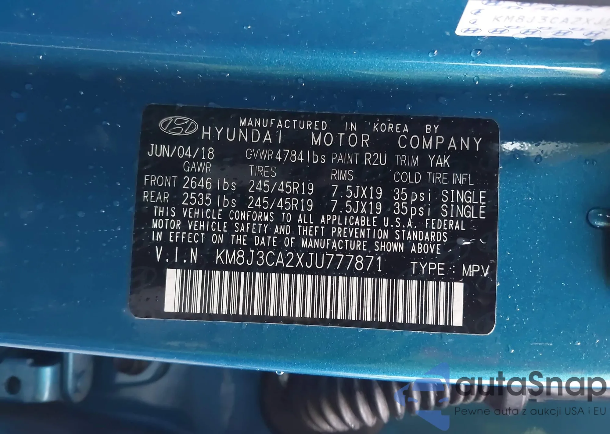 • VIN KM8J3CA2XJU777871