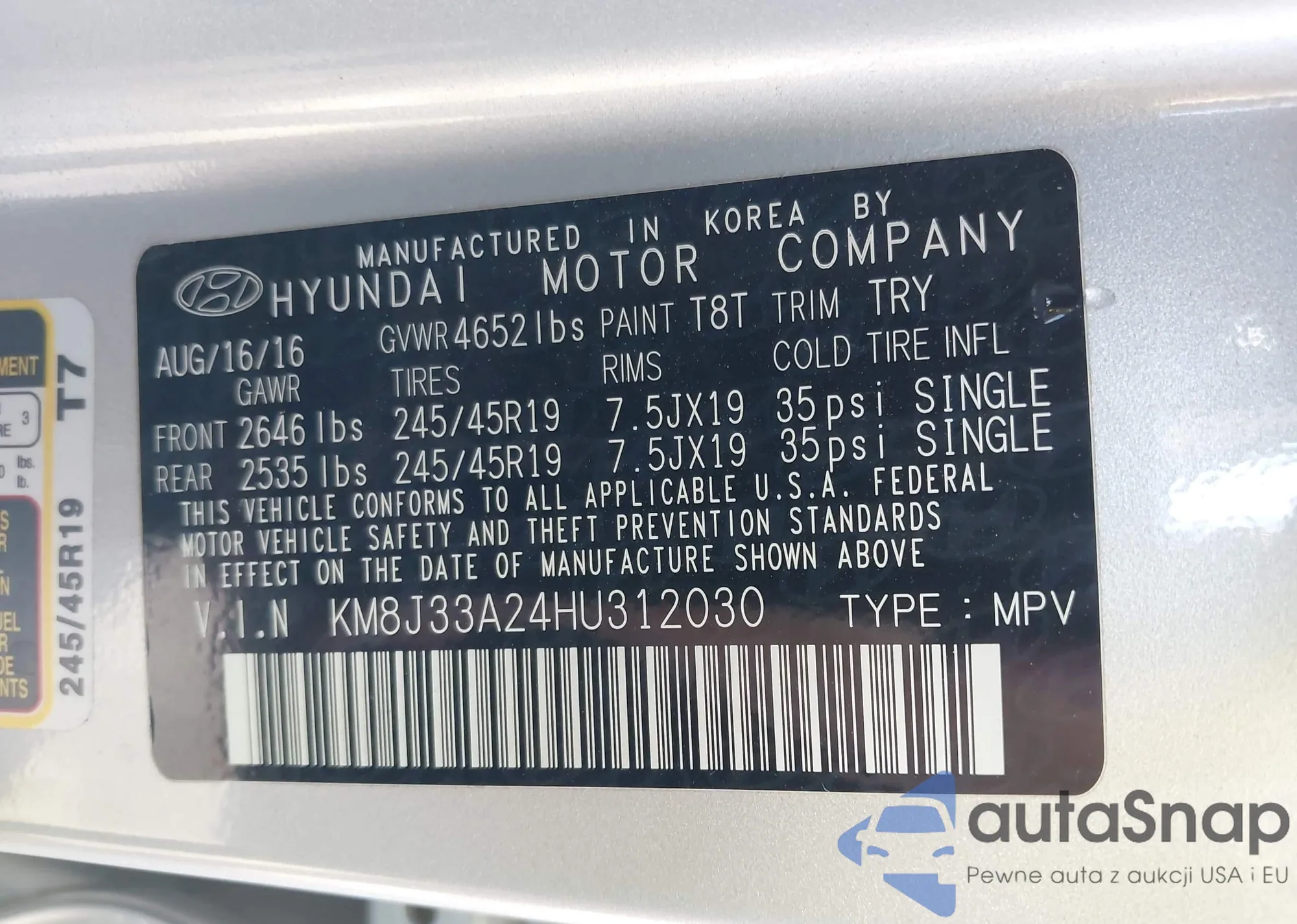 • VIN KM8J33A24HU312030
