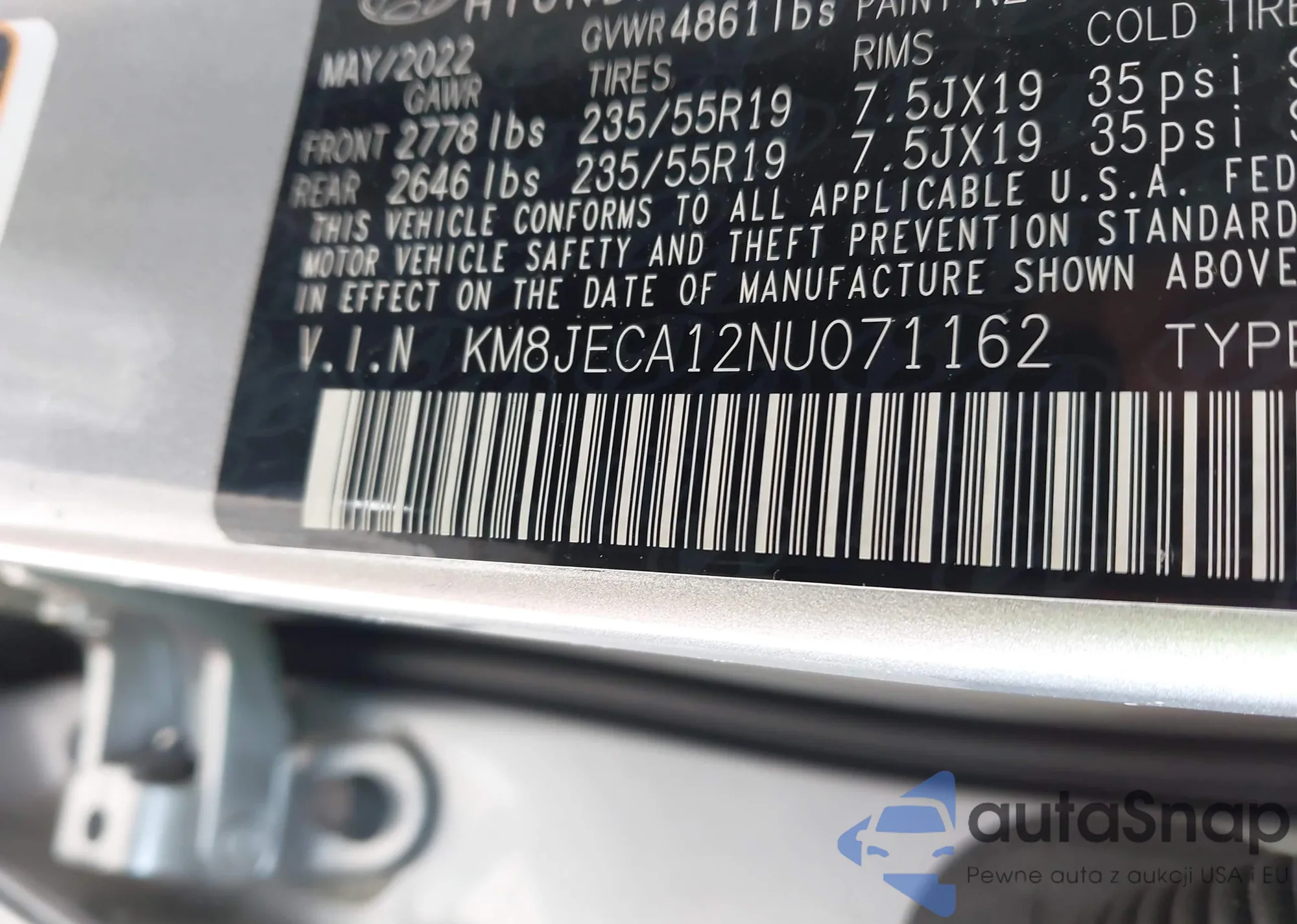 • VIN 5NMJBCAE8NH081847