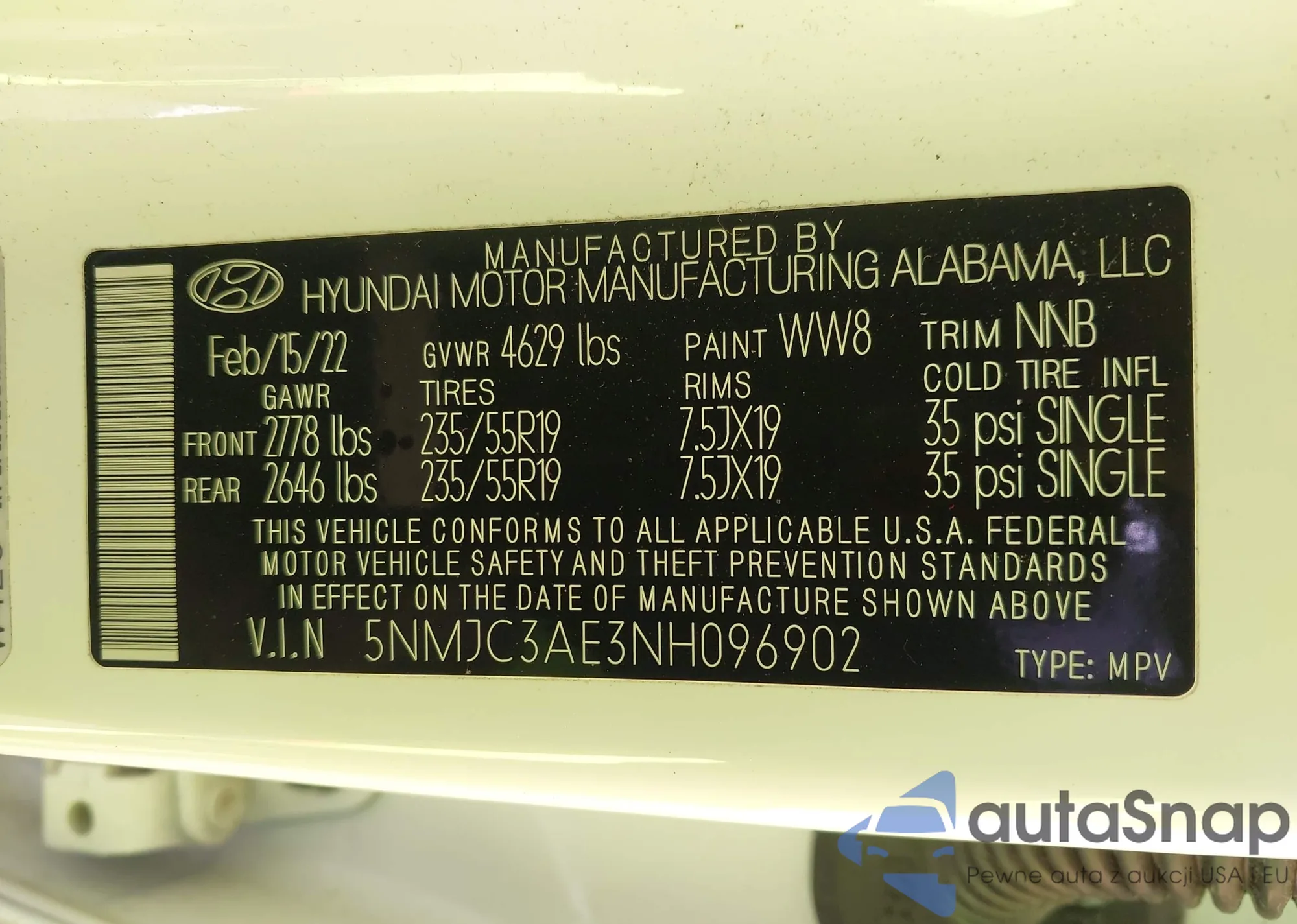 • VIN 5NMJC3AE3NH096902