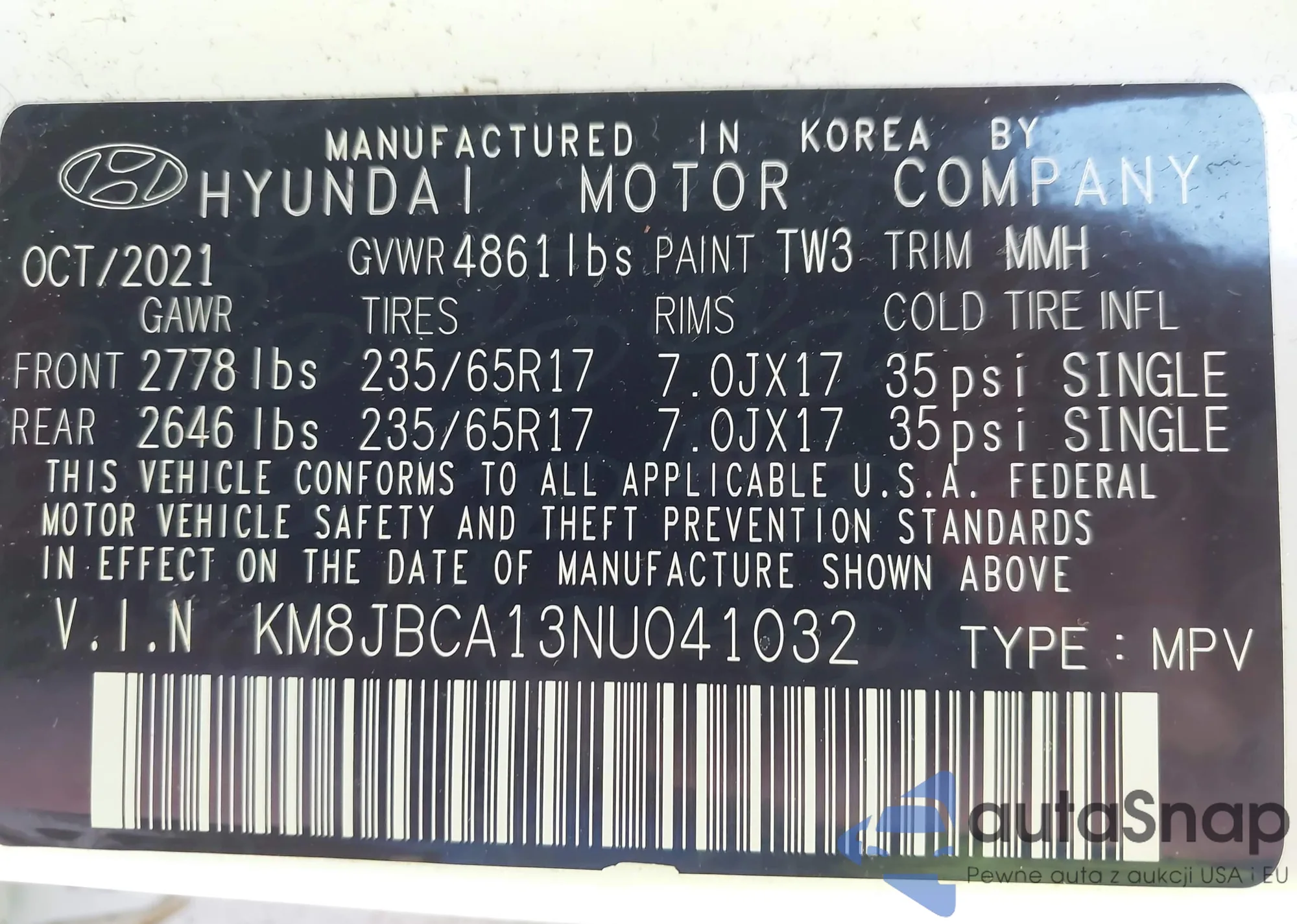 • VIN KM8JBCA13NU041032