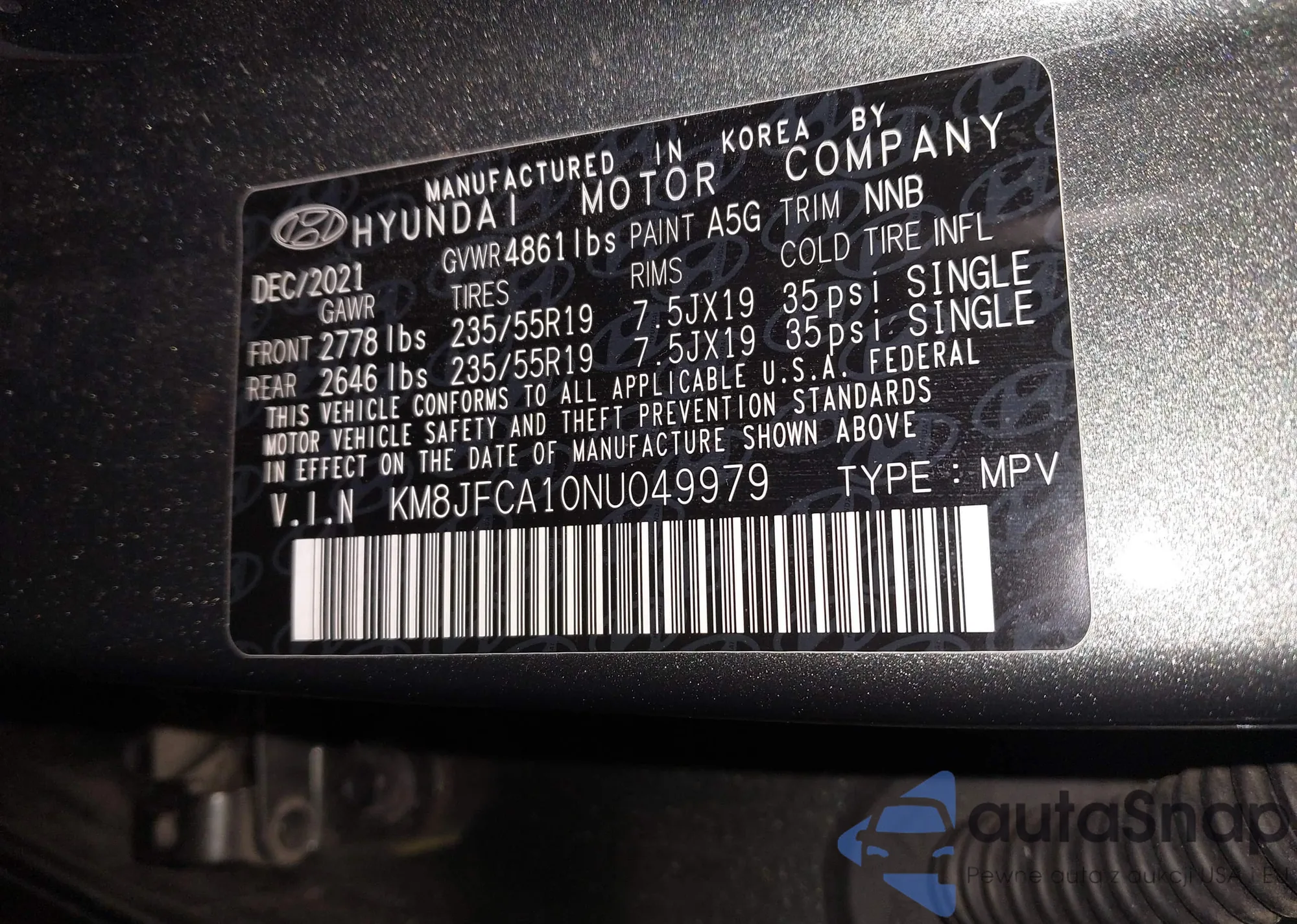 LOT: 44476533 VIN: KM8JBCA13NU041032