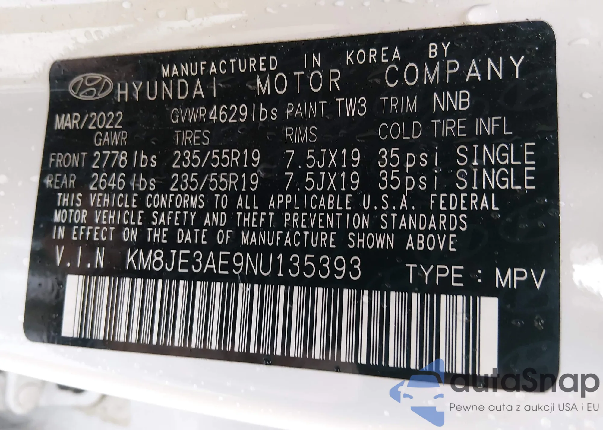 • VIN KM8JE3AE9NU135393