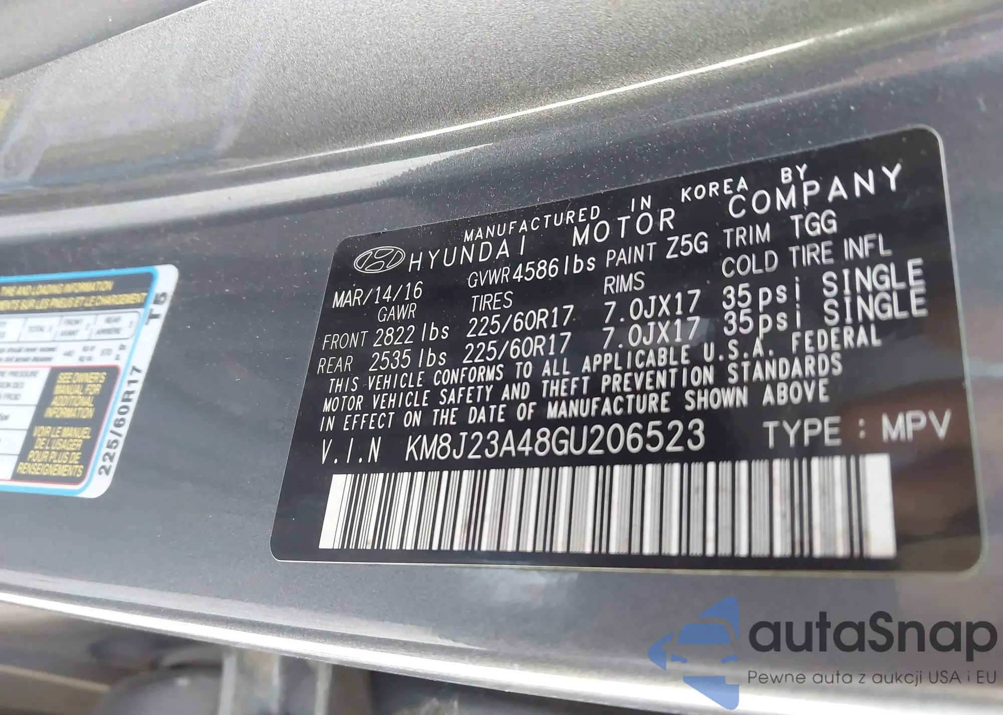 • VIN KM8J23A48GU206523