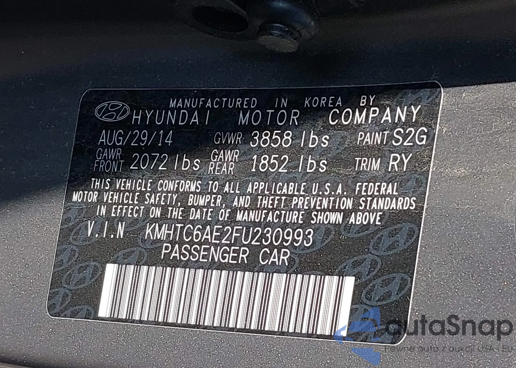 LOT: 41925877 VIN: KMHTC6AE2FU230993