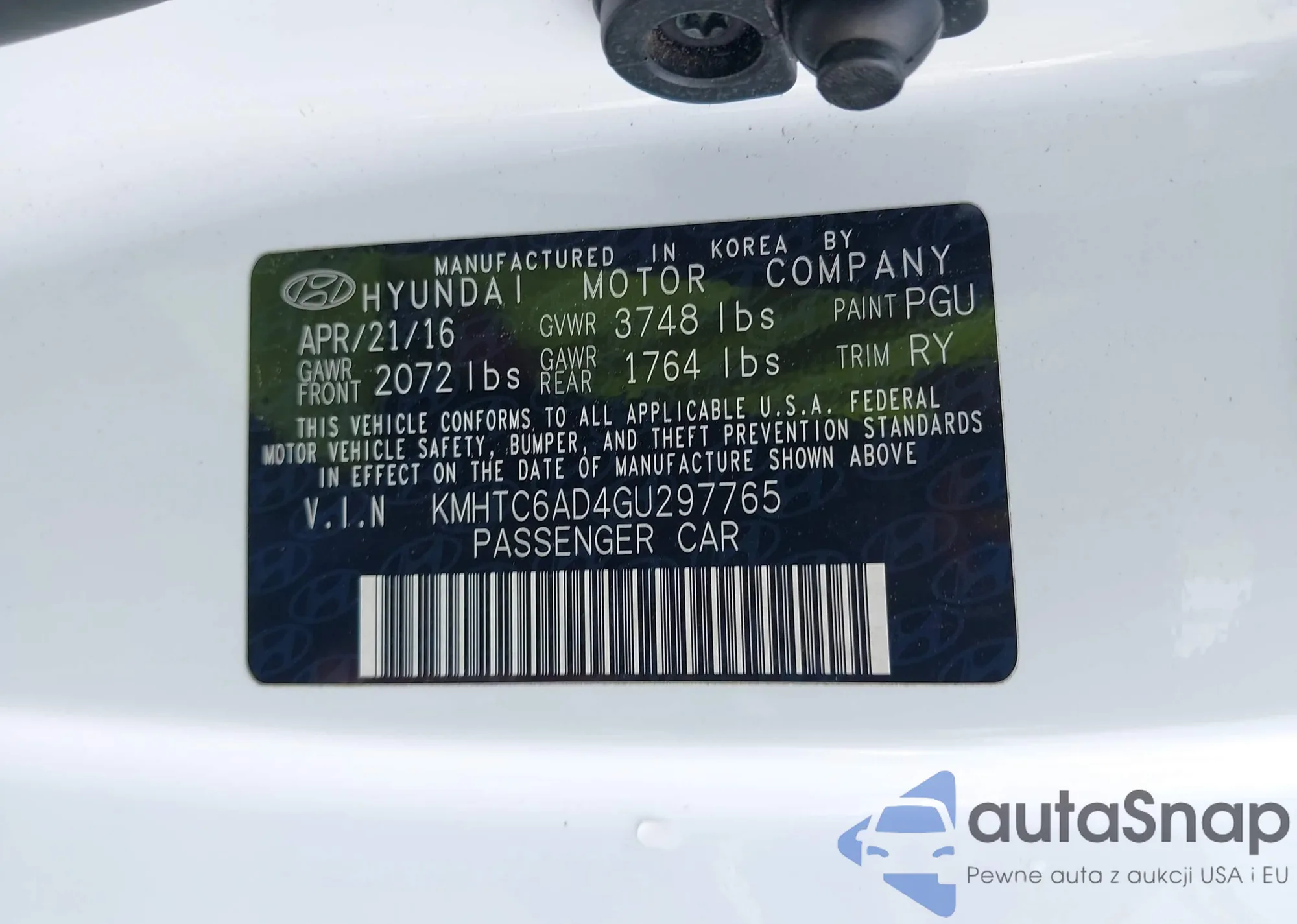 • VIN KMHTC6AD4GU297765