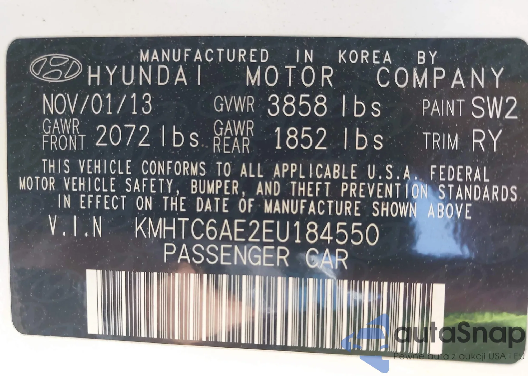 • VIN KMHTC6AE2EU184550