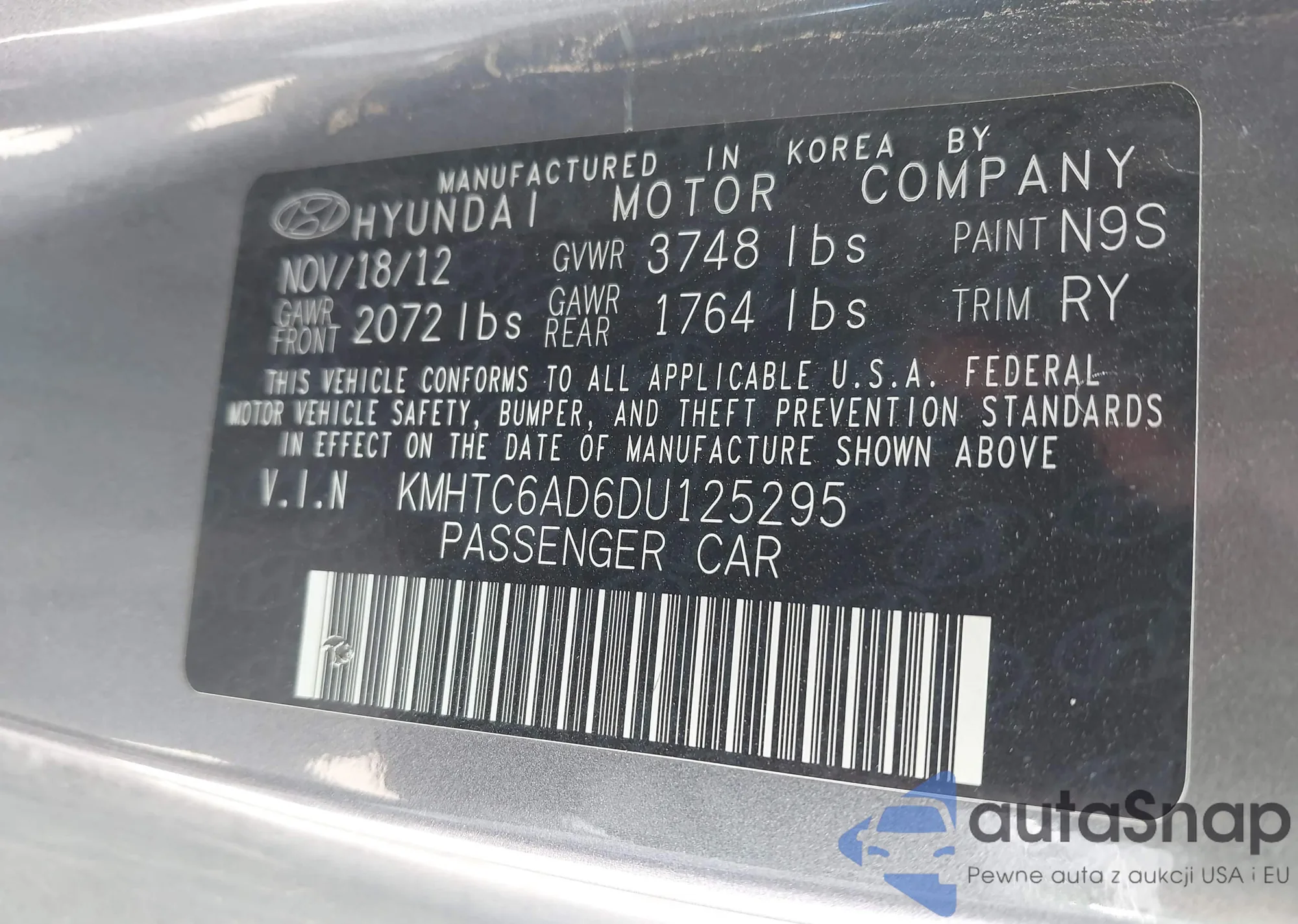 • VIN KMHTC6AD6DU125295