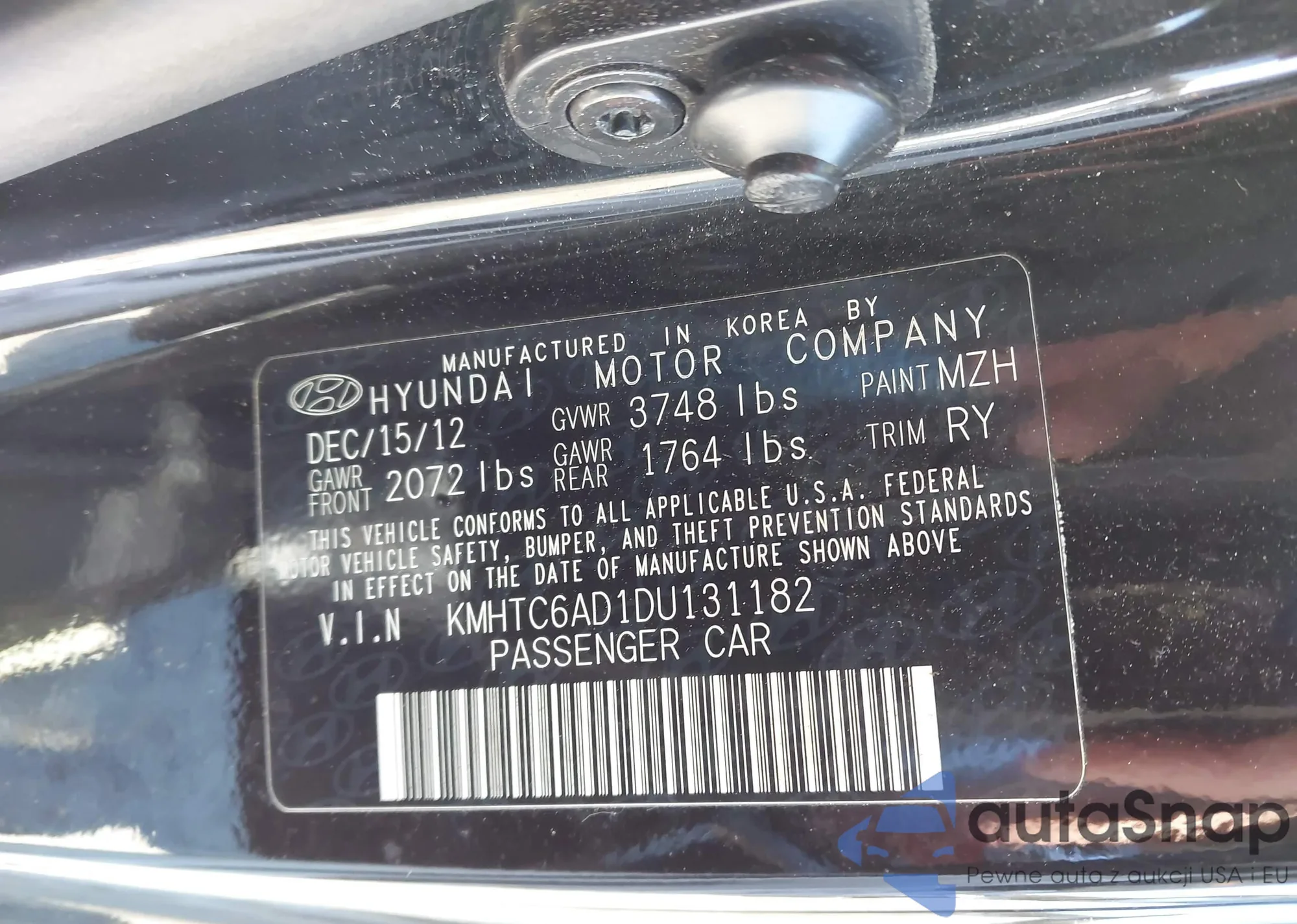 • VIN KMHTC6AD1DU131182