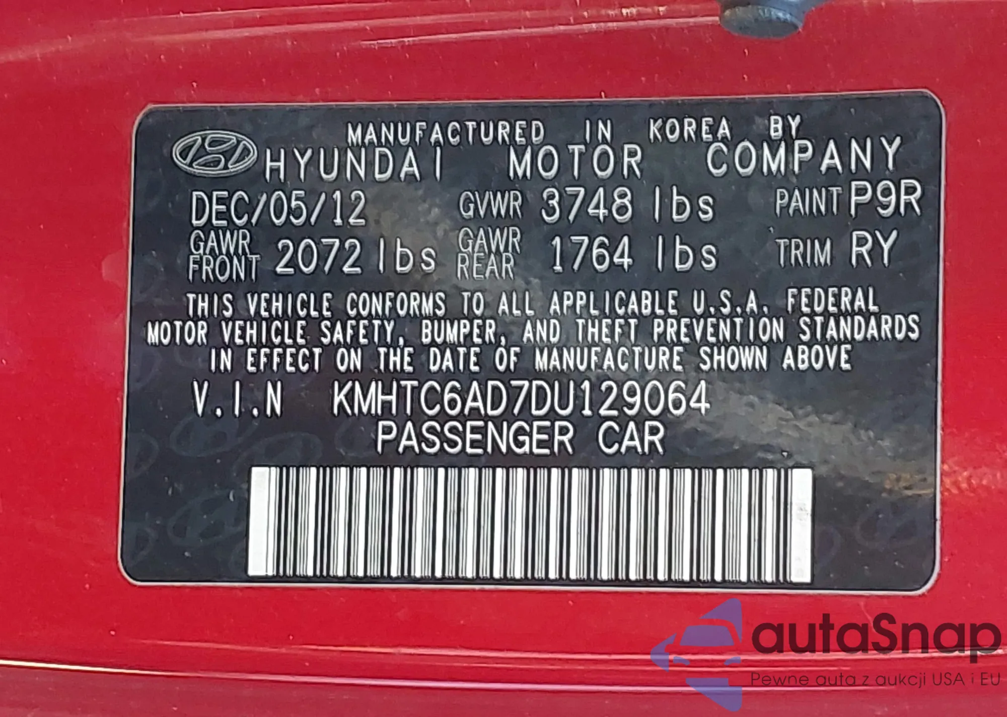 • VIN KMHTC6AD7DU129064
