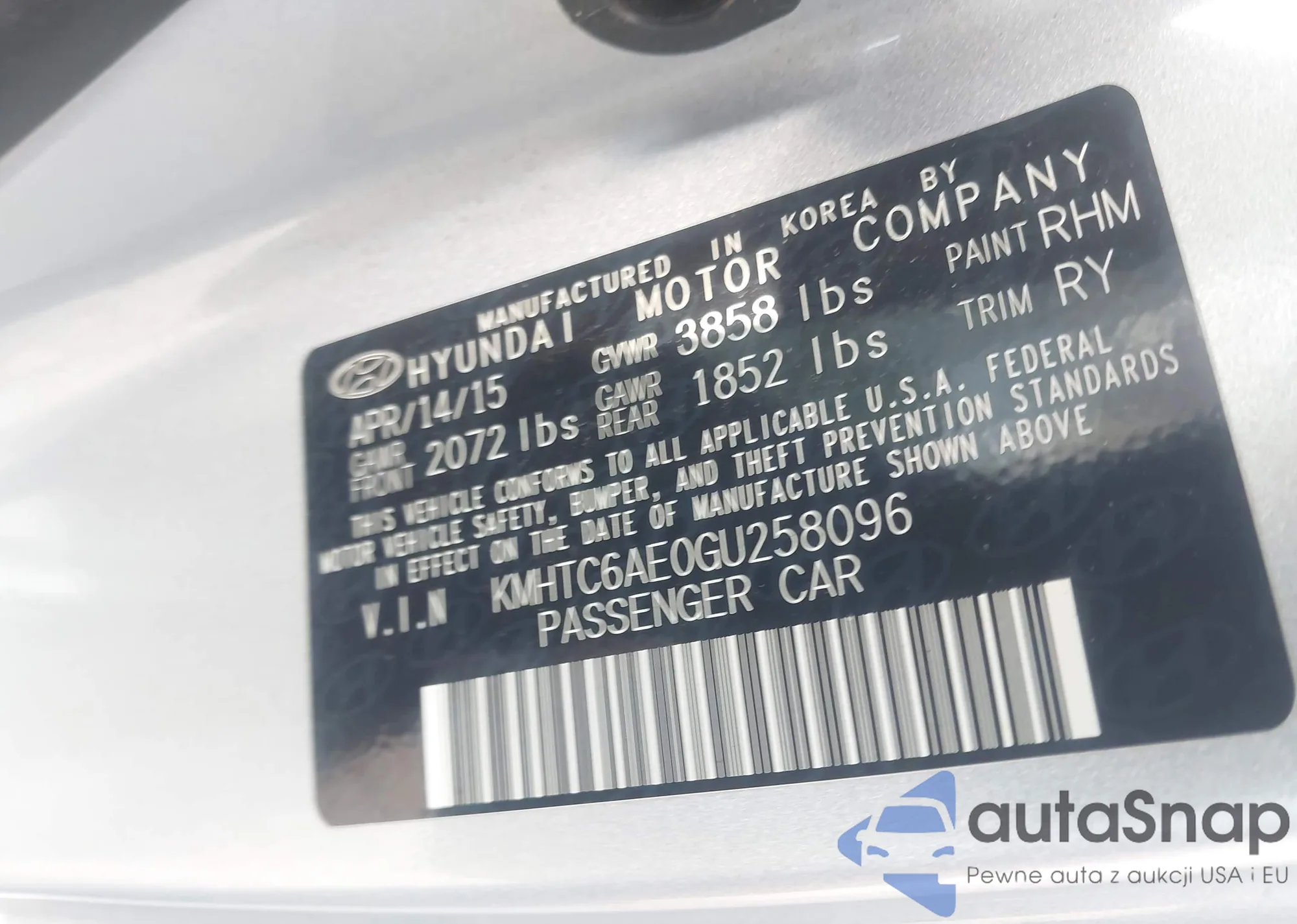 • VIN KMHTC6AE0GU258096