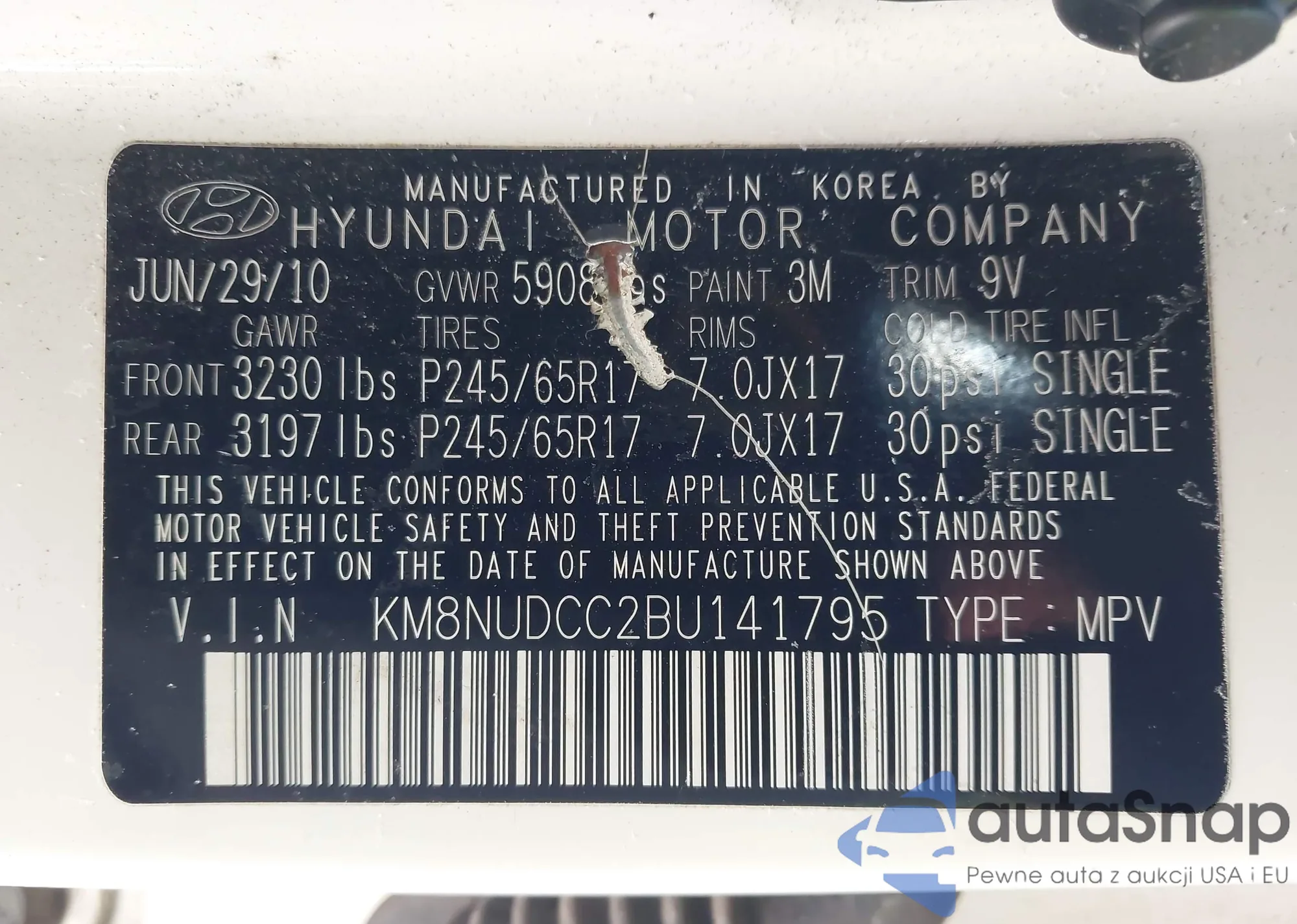 • VIN KM8NUDCC2BU141795
