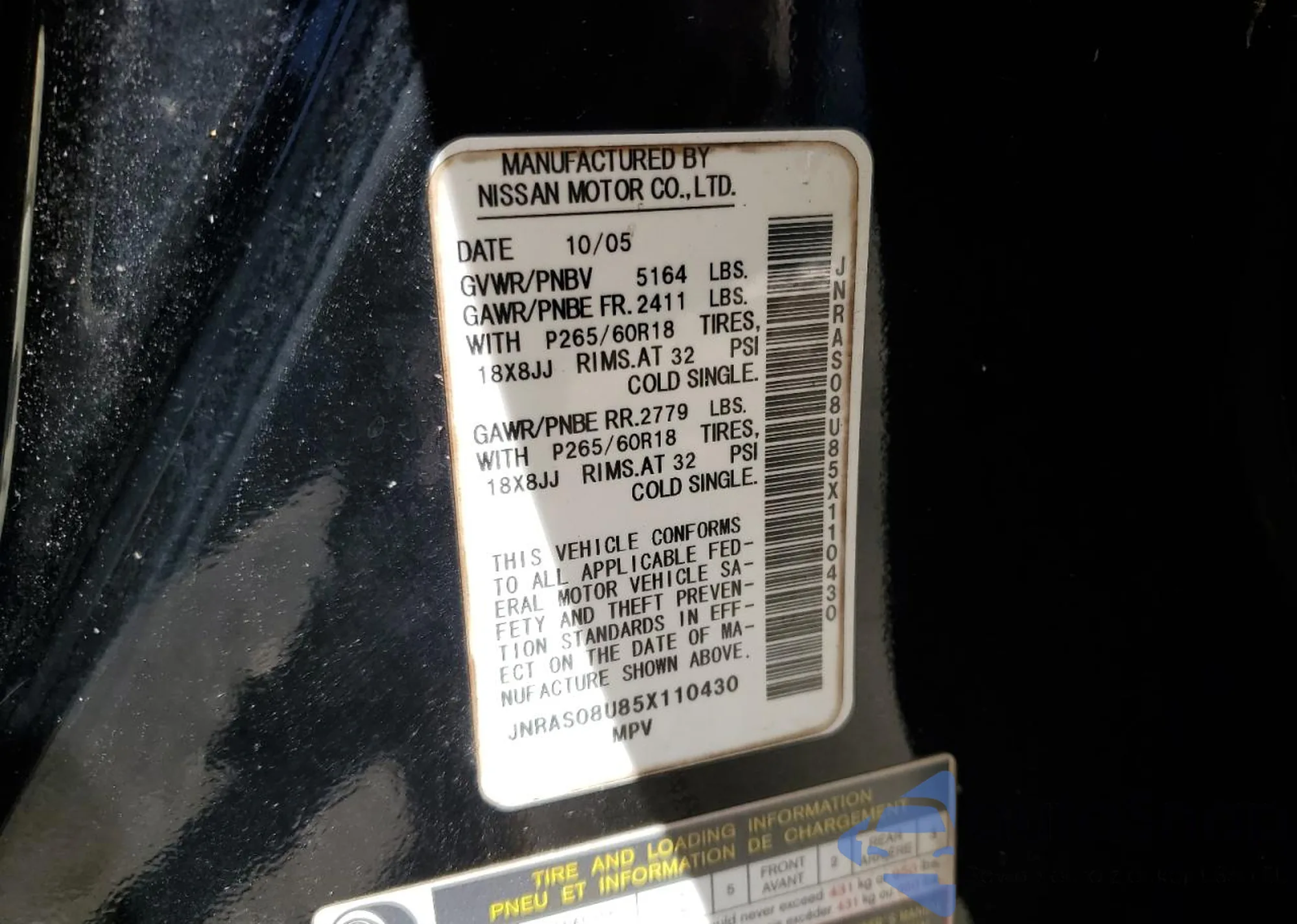 • VIN JNRAS08U85X110430
