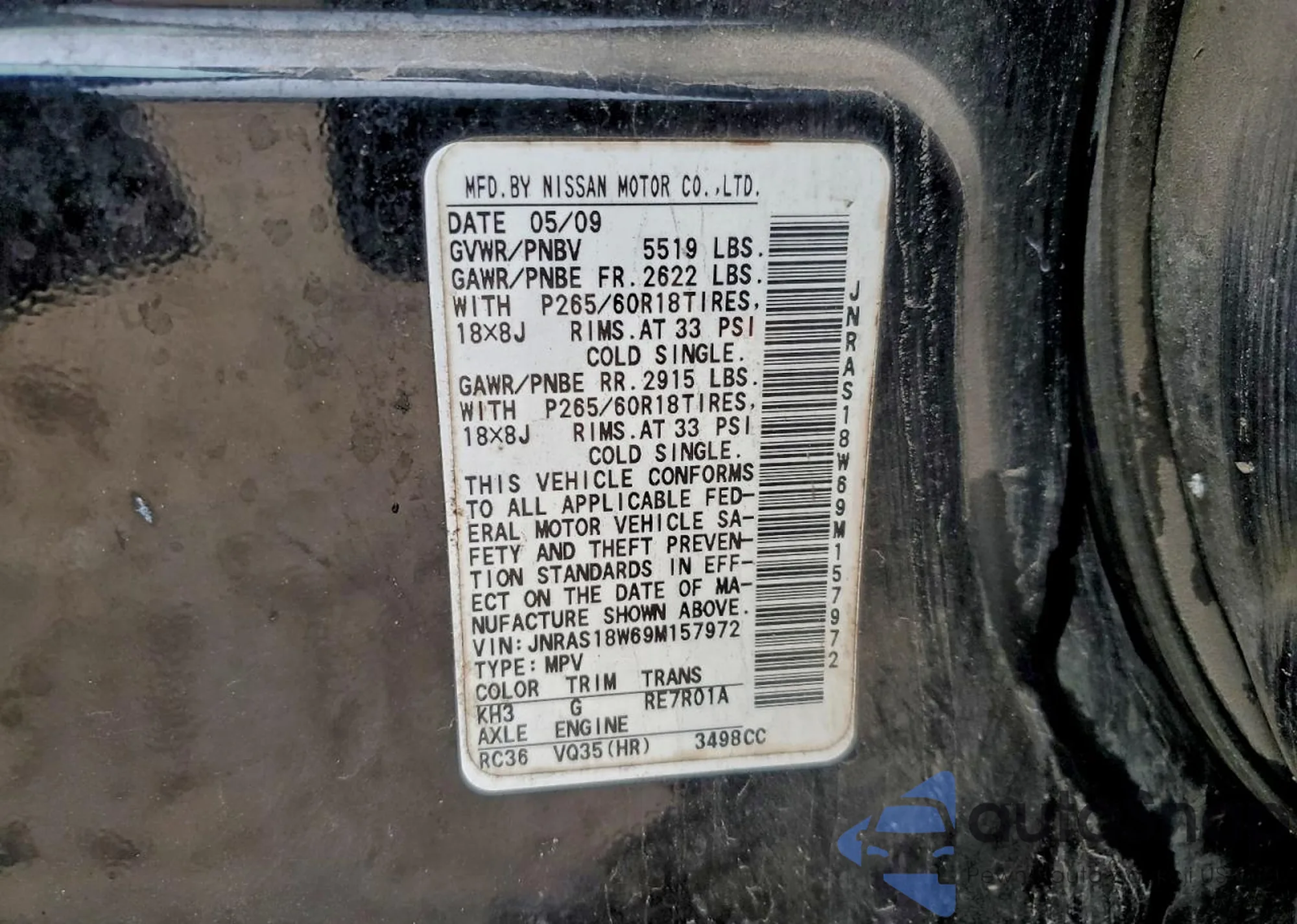 LOT: 95104945 VIN: JNRAS18W69M157972