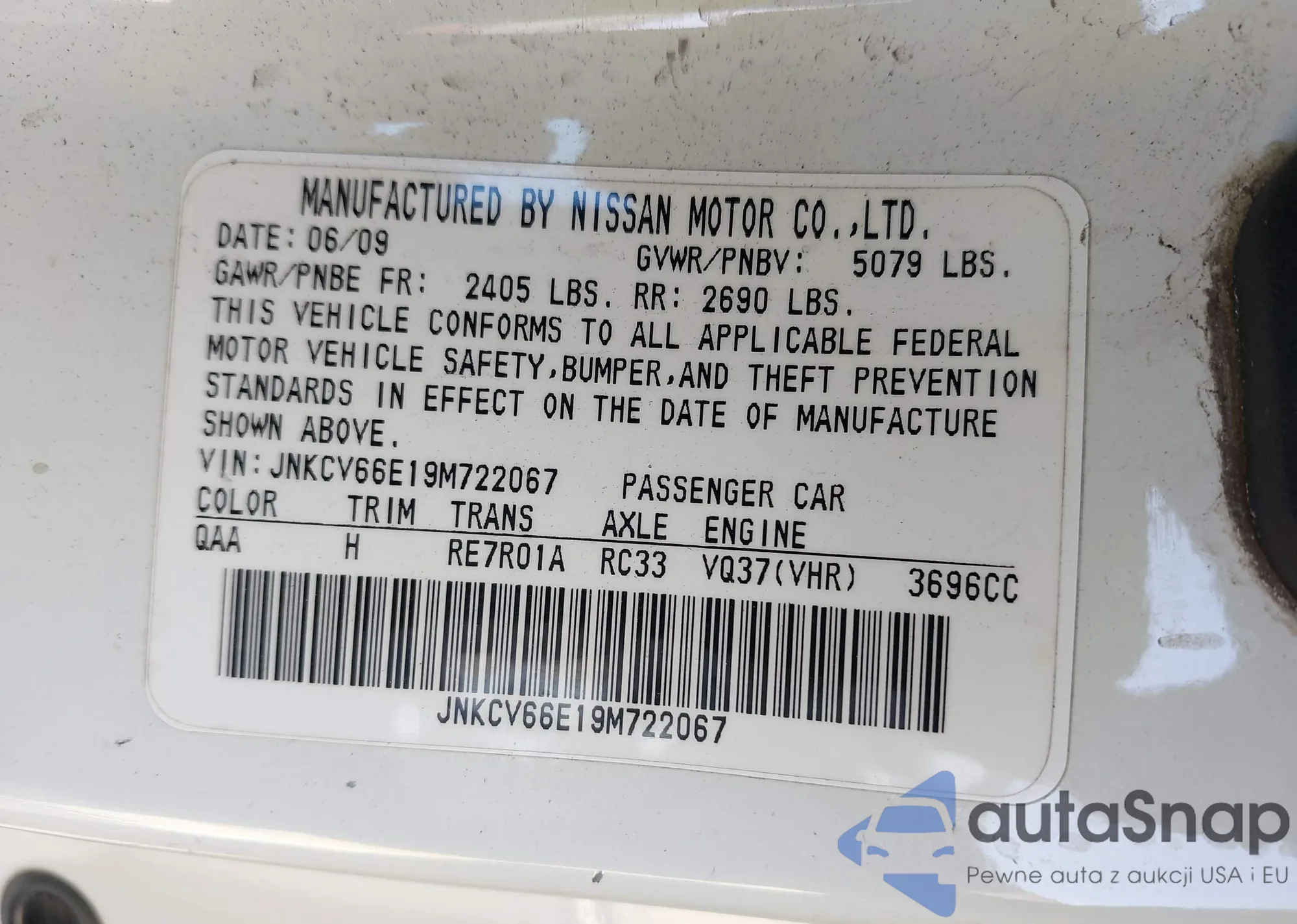 LOT: 43358109 VIN: JNKCV61E19M302347
