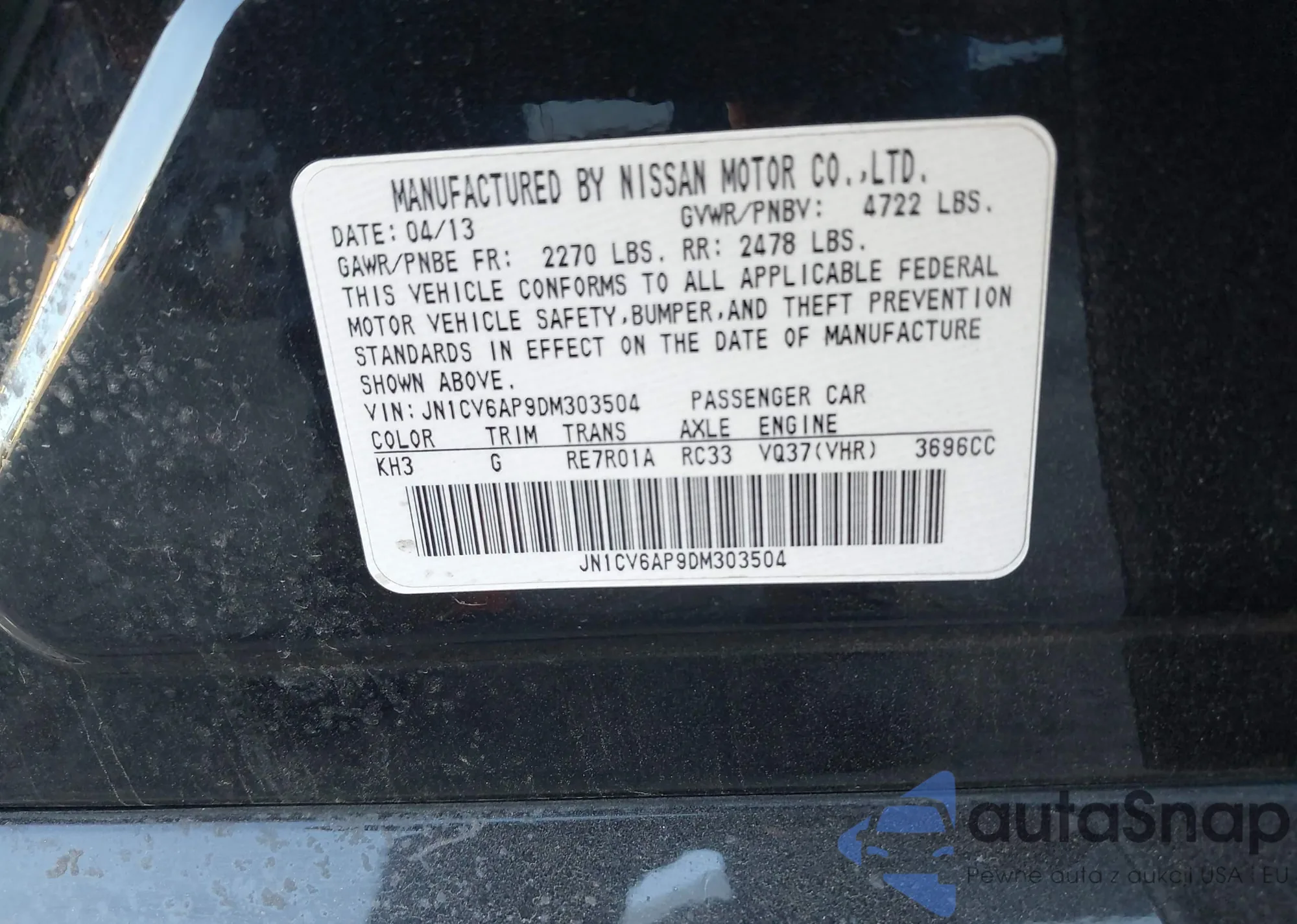 • VIN JN1CV6AP9DM303504