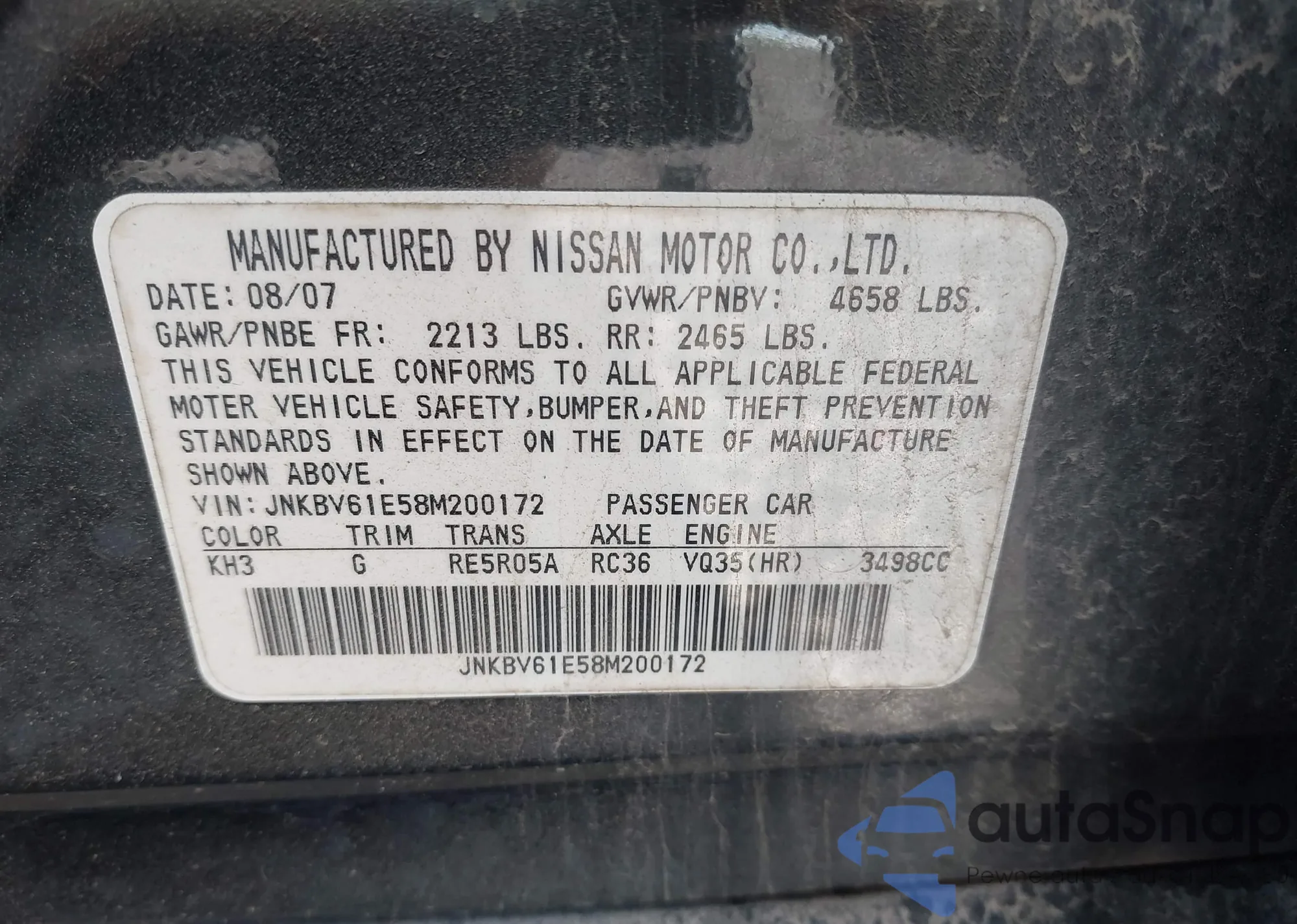 LOT: 42120843 VIN: JNKBV61E58M200172