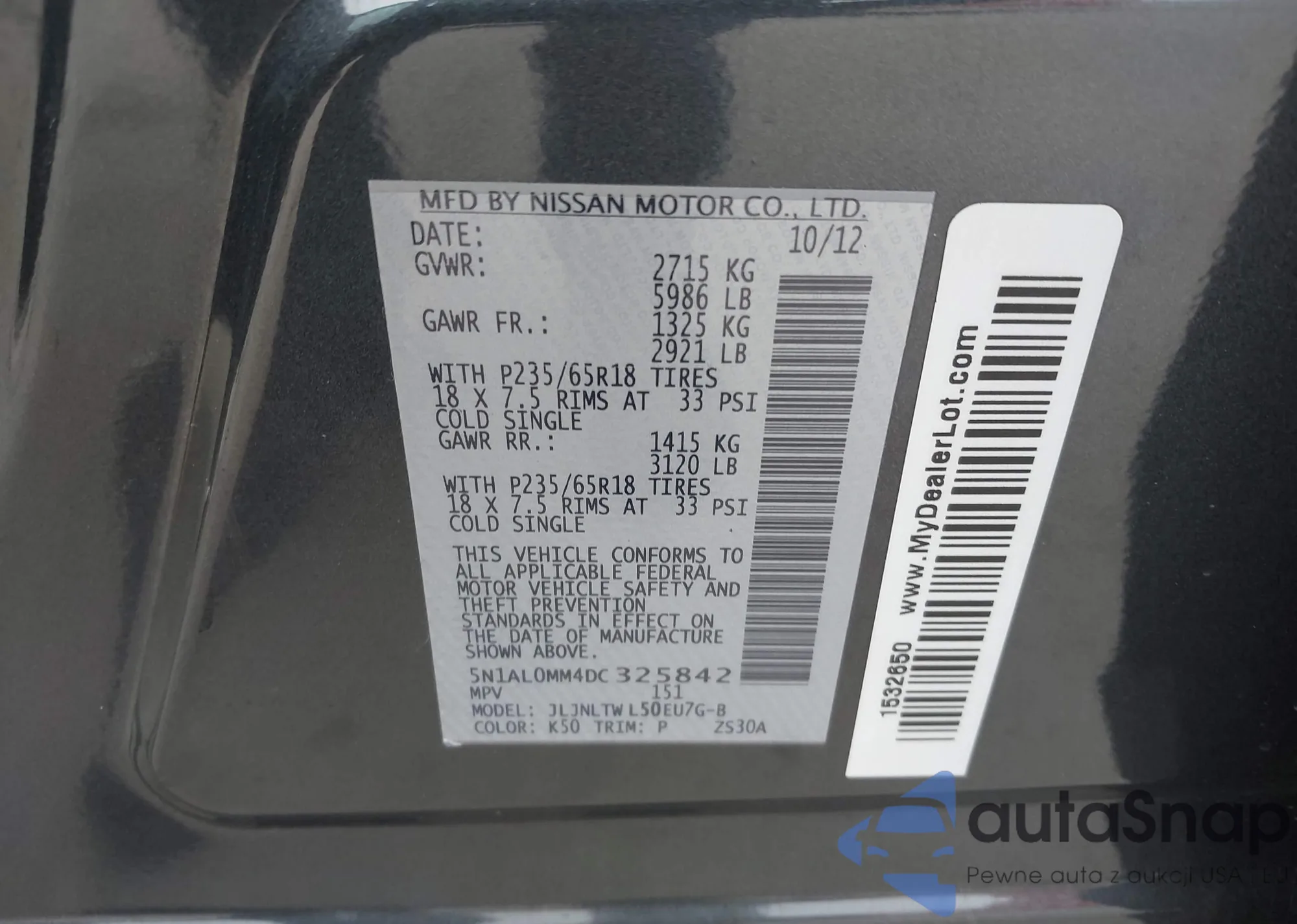 • VIN 5N1AL0MM5DC327907