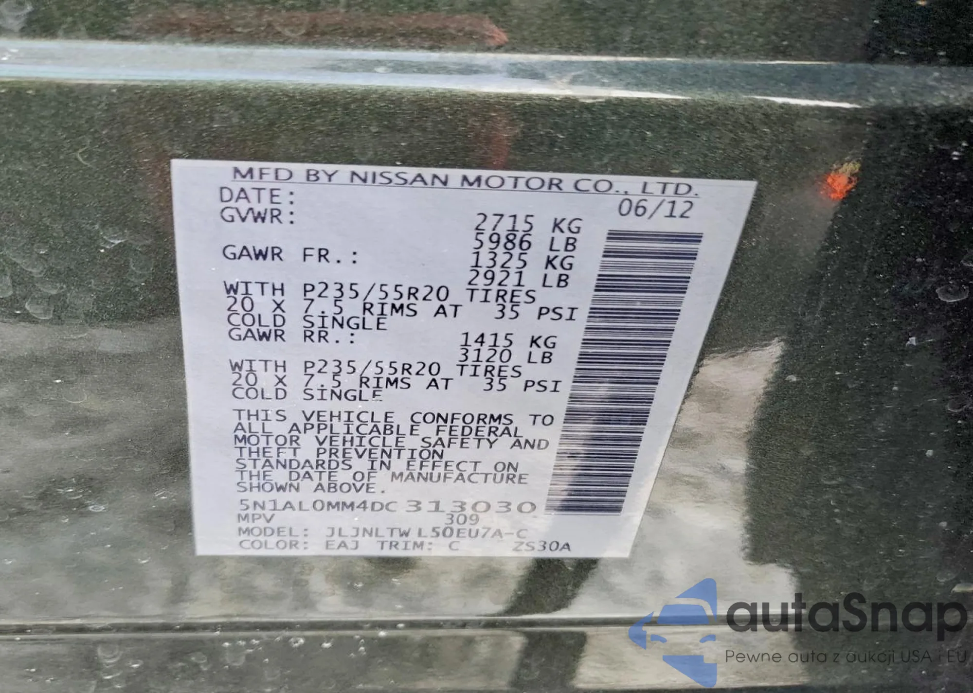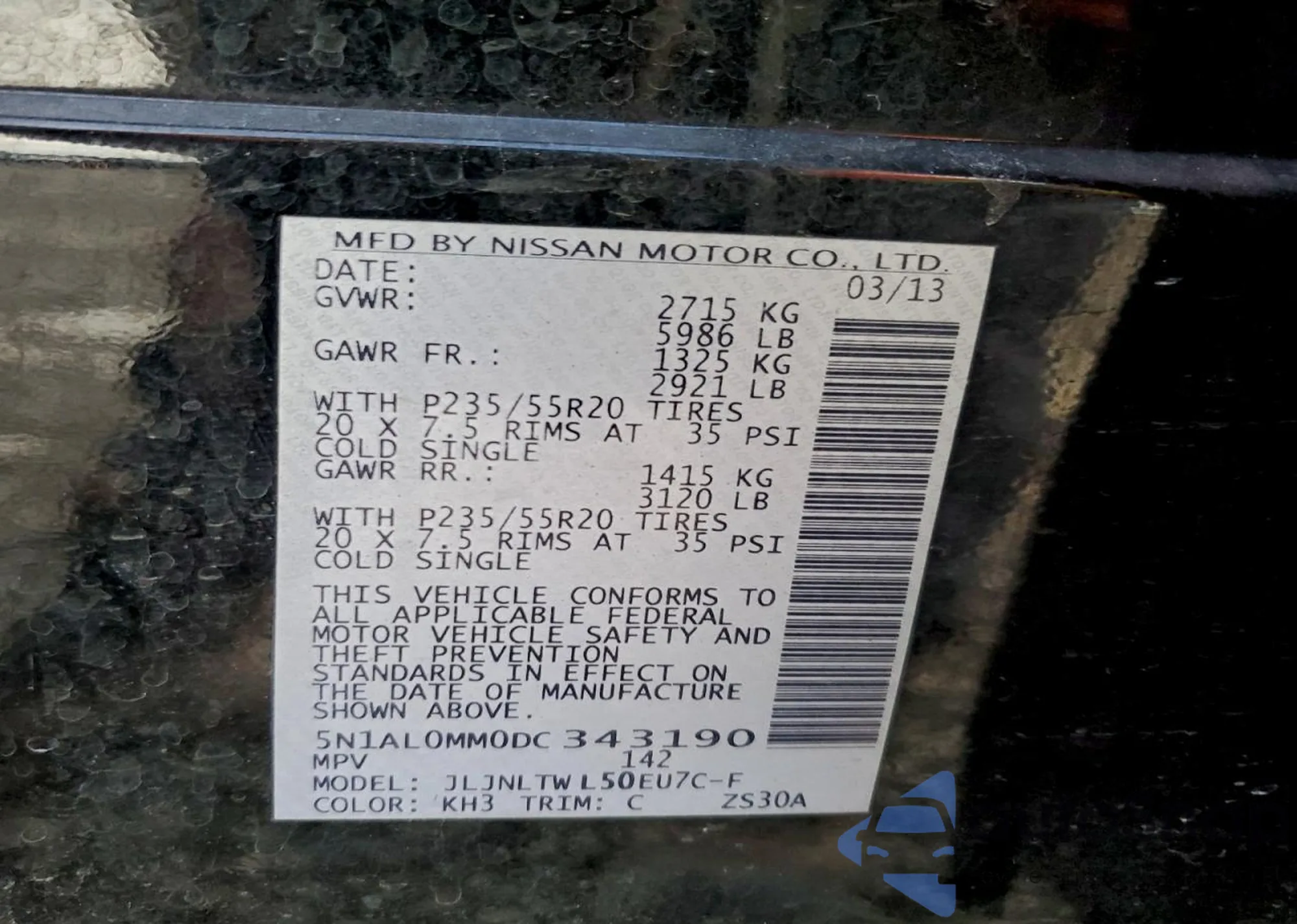 • VIN 5N1AL0MM4DC313030