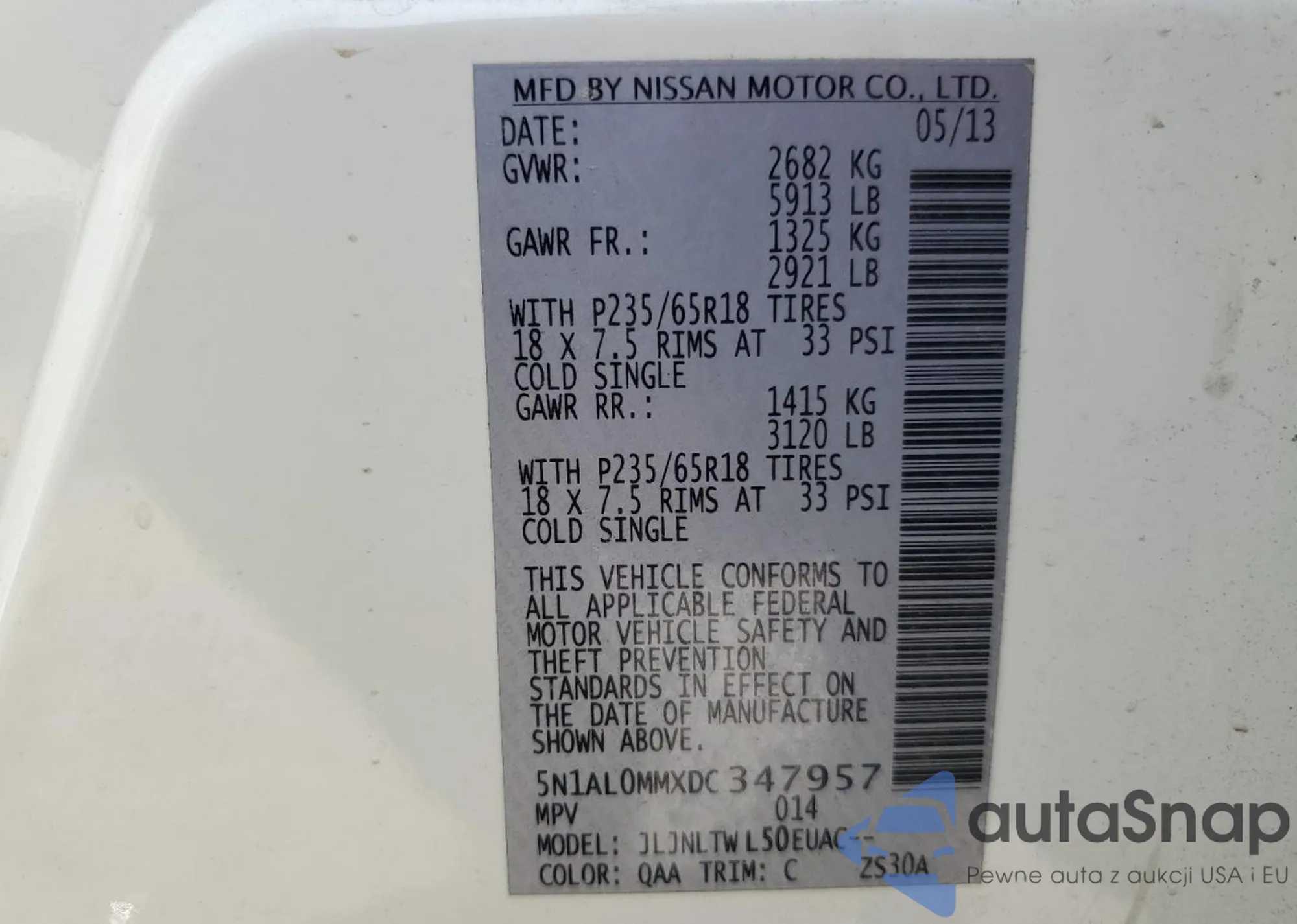 • VIN 5N1AL0MMXDC347957