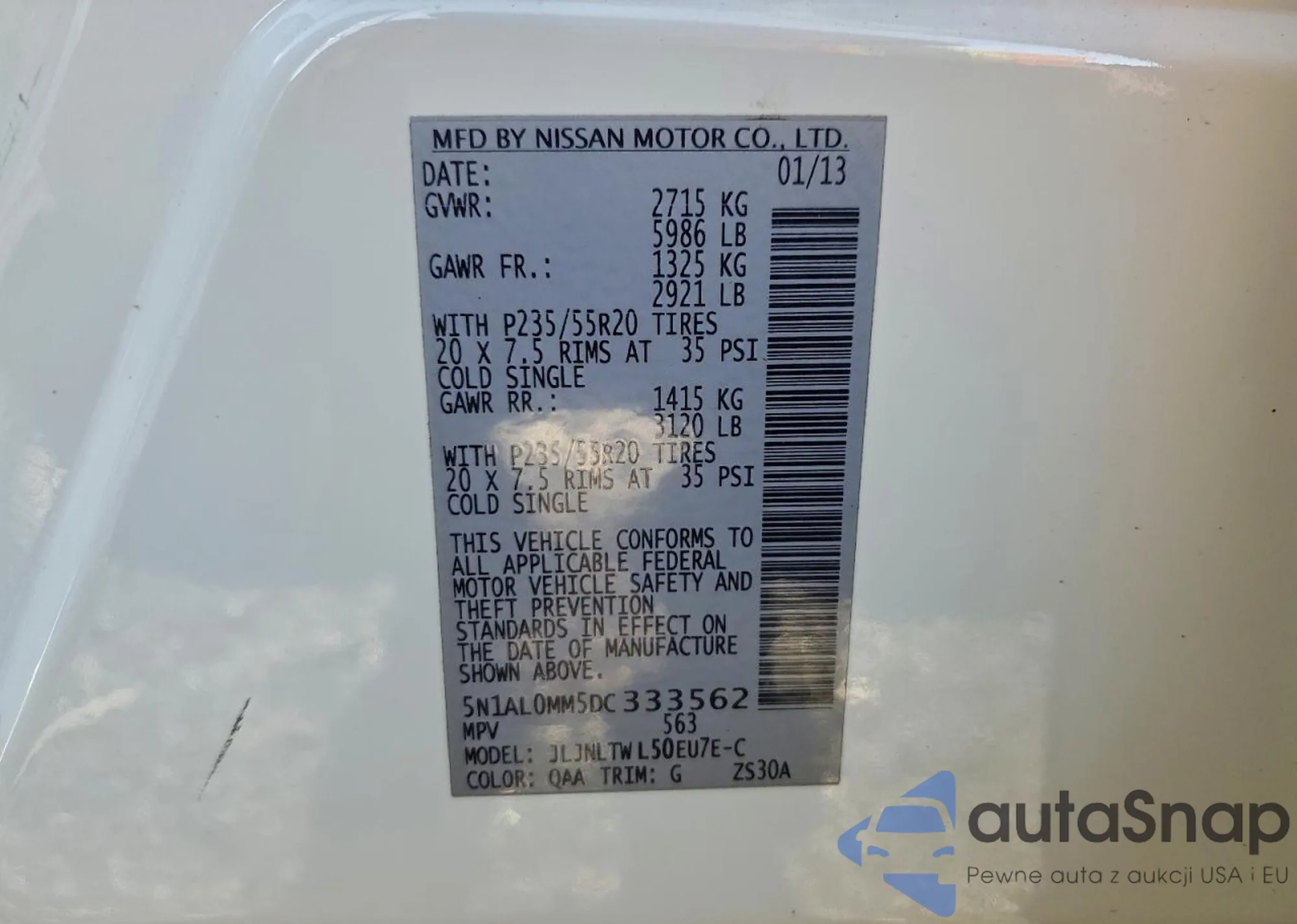 • VIN 5N1AL0MM5DC333562
