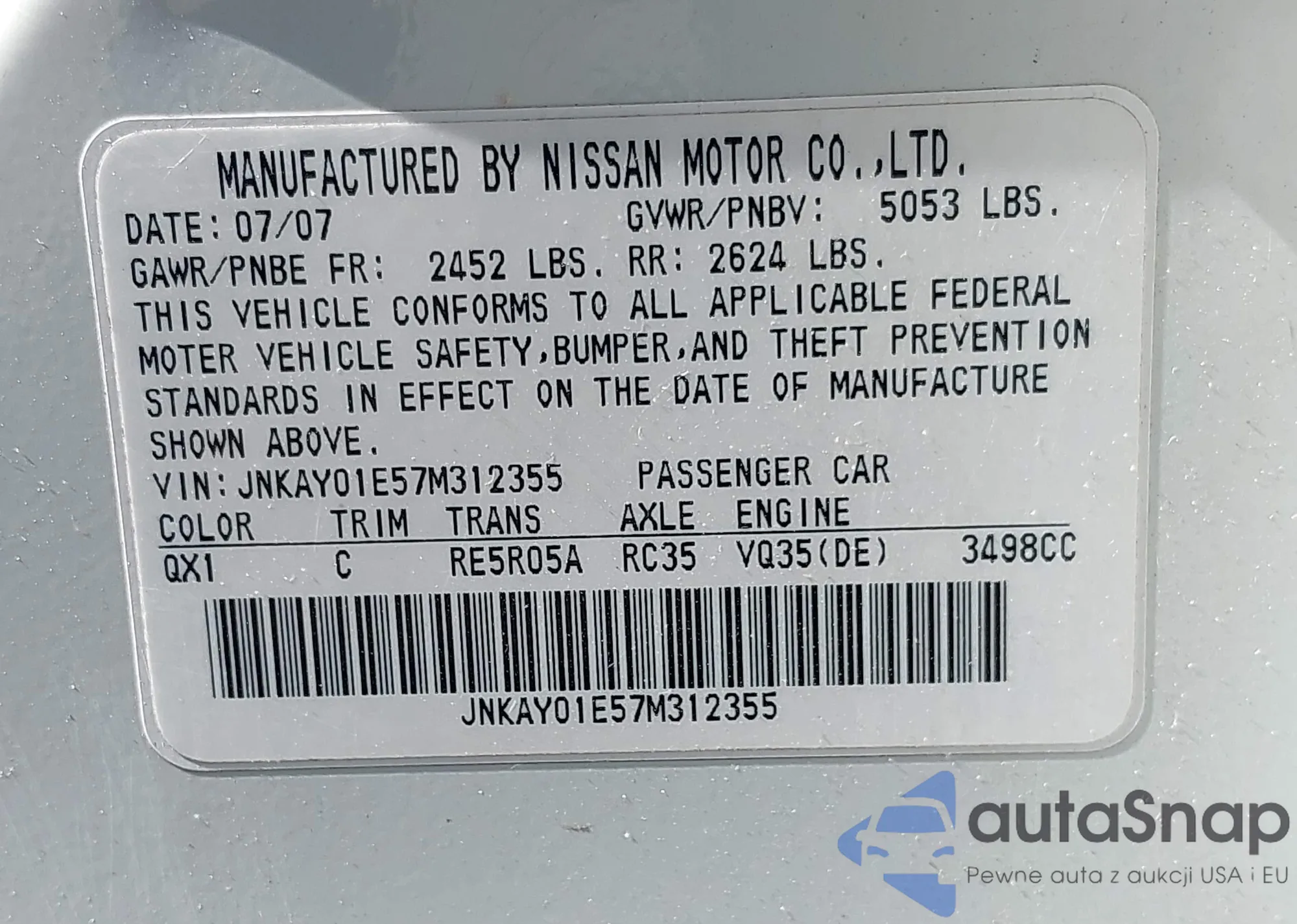 • VIN JNKAY01E57M312355