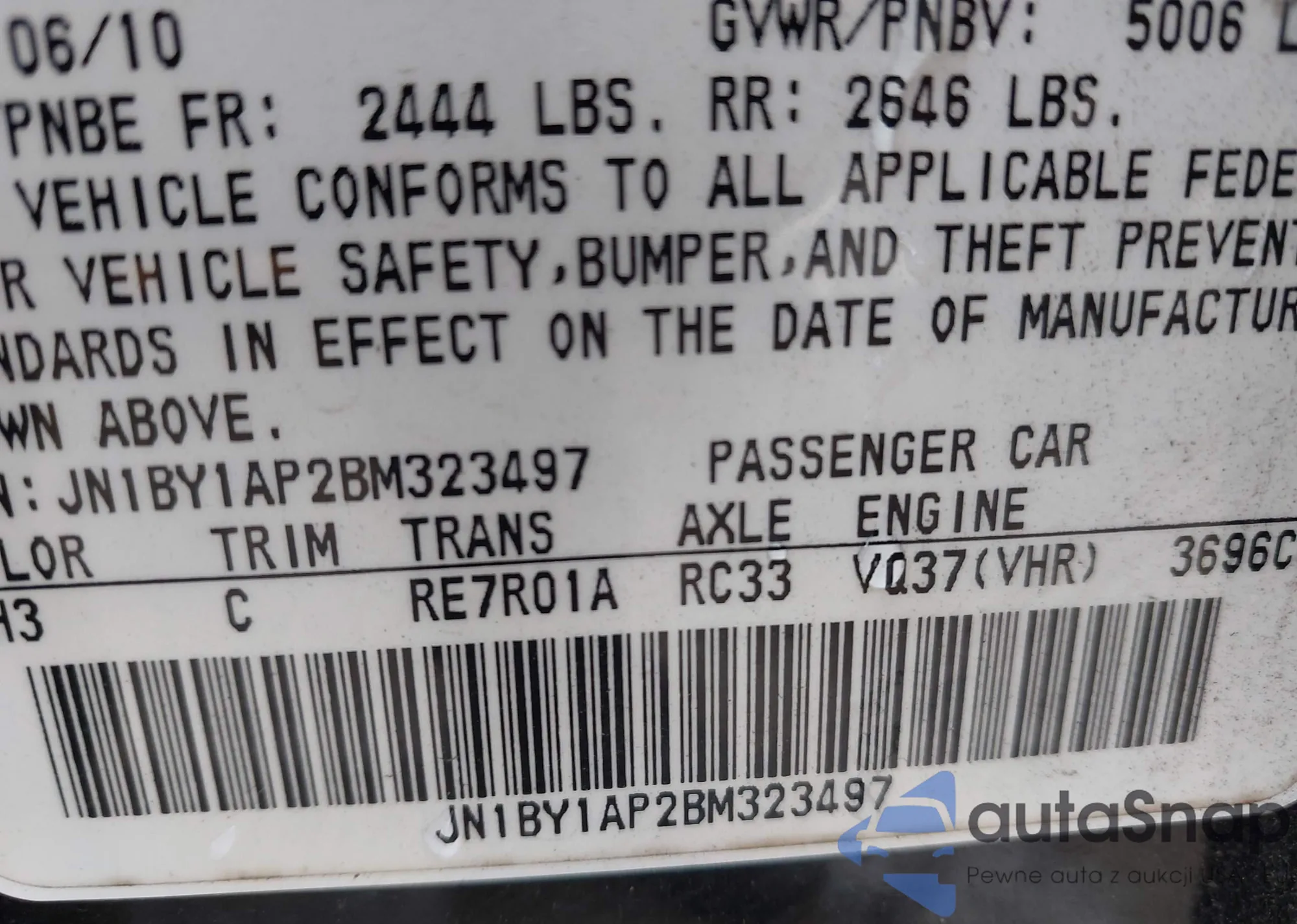 LOT: 44145257 VIN: JN1BY1AP0BM320050