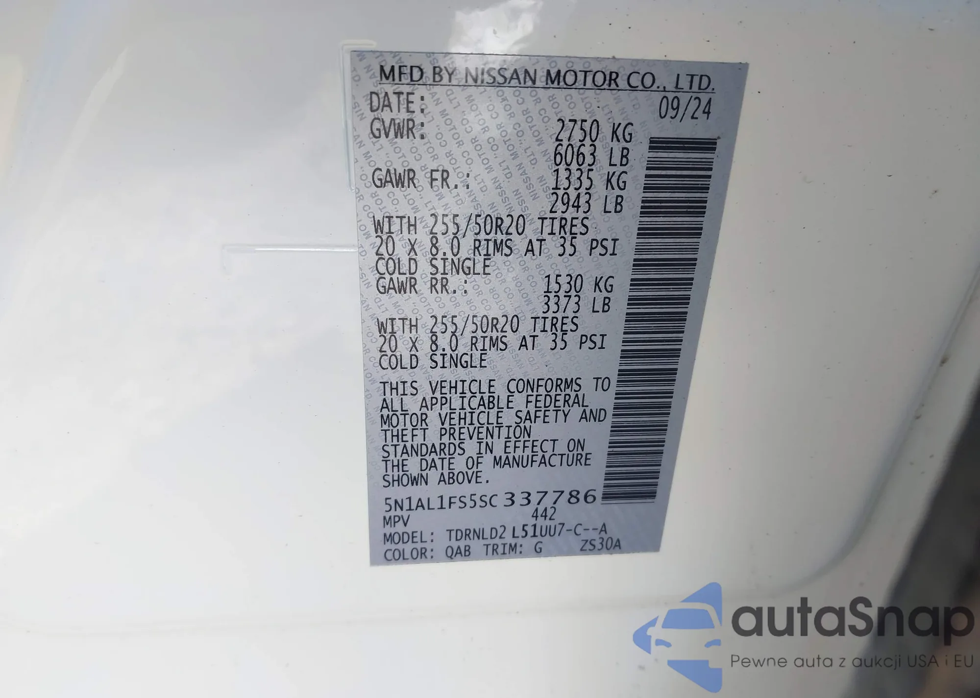 • VIN 5N1AL1FS5SC337786