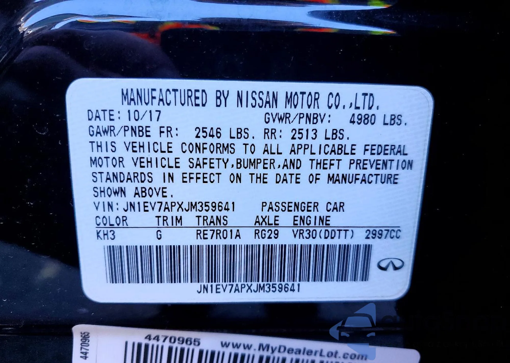 LOT: 98605465 VIN: JN1CV7AP1HM642270