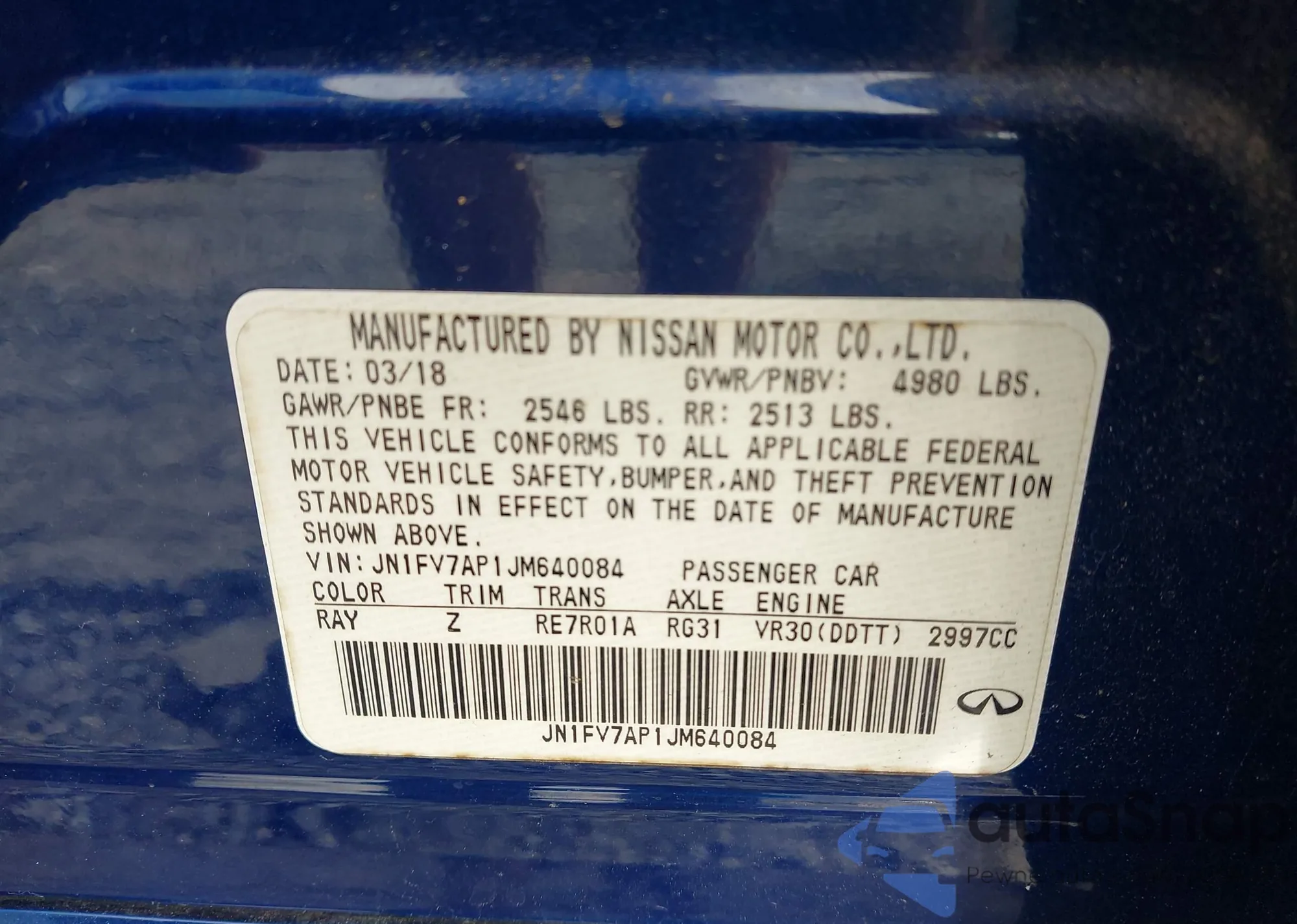 LOT: 44030798 VIN: JN1EV7AR3JM431104