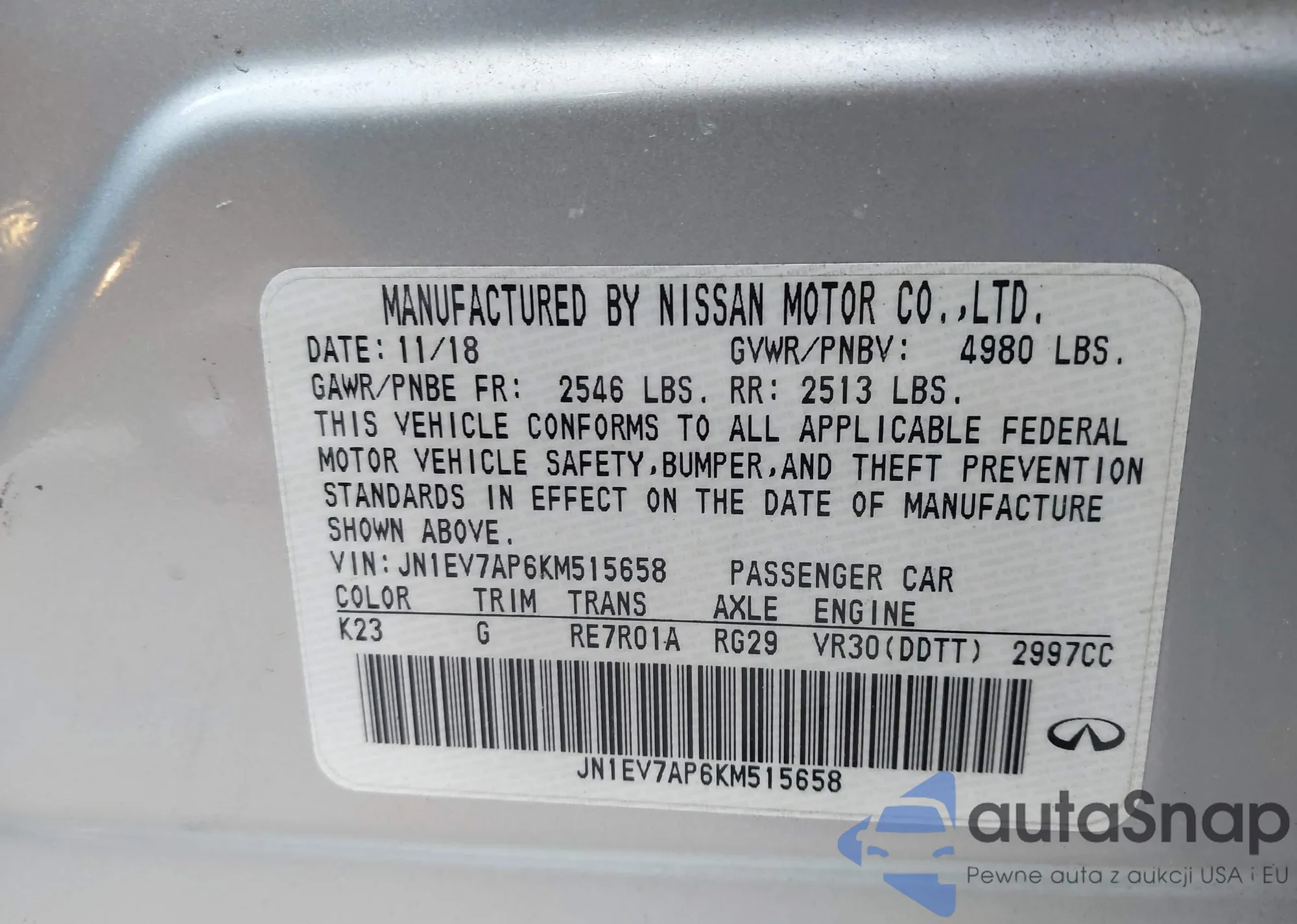 LOT: 44021483 VIN: JN1EV7AP6KM515658