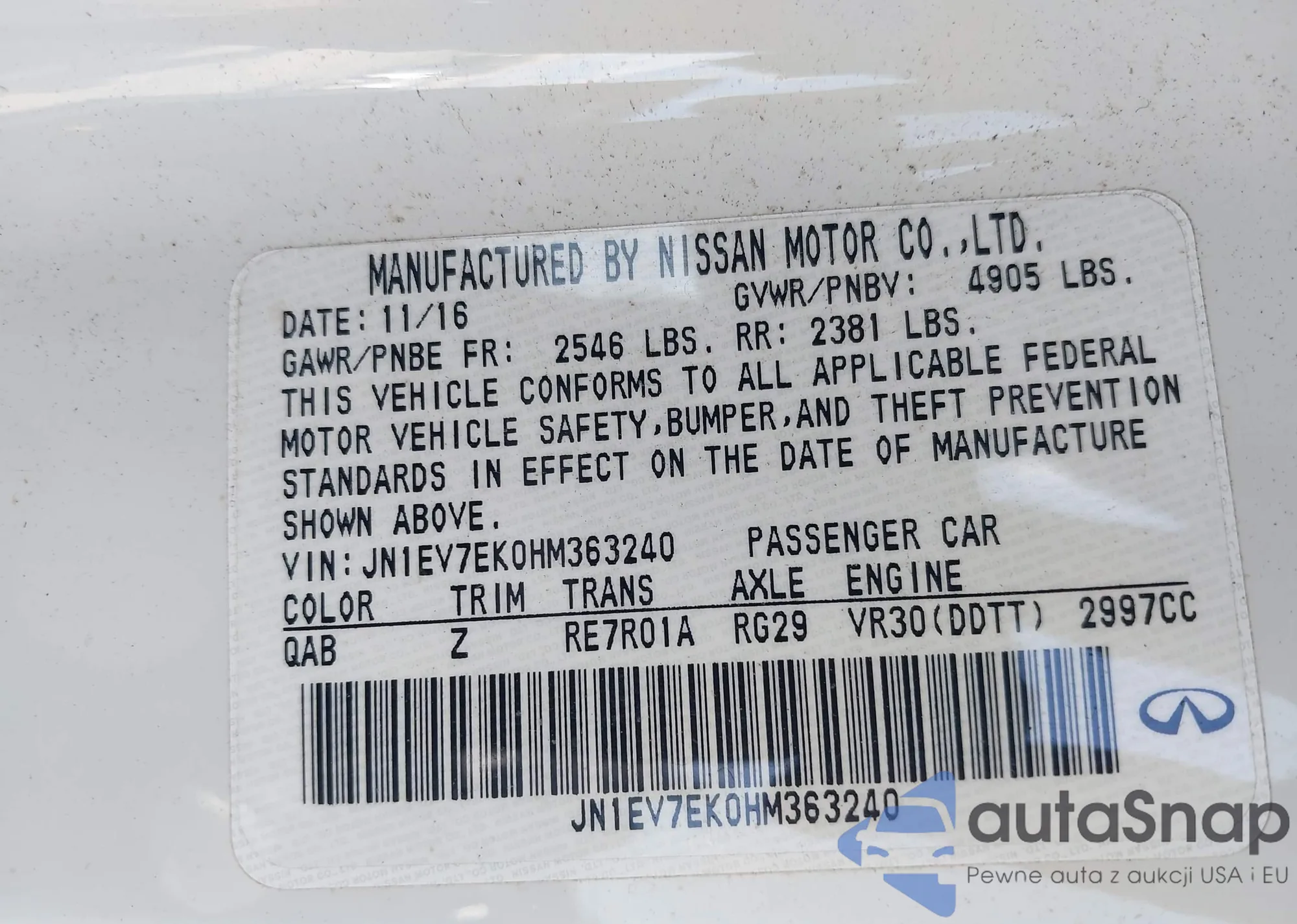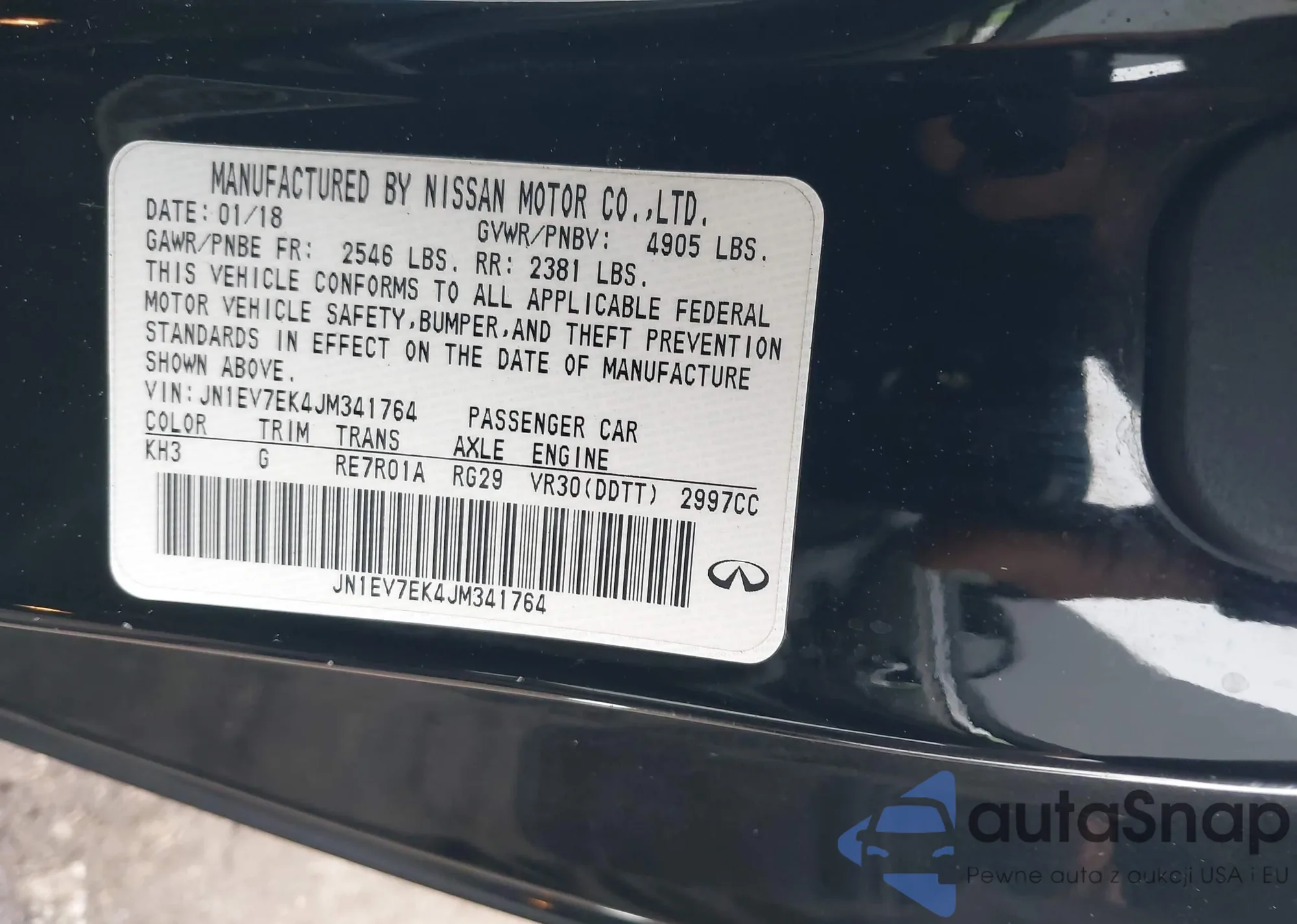 LOT: 44409840 VIN: JN1CV7EK1JM200352