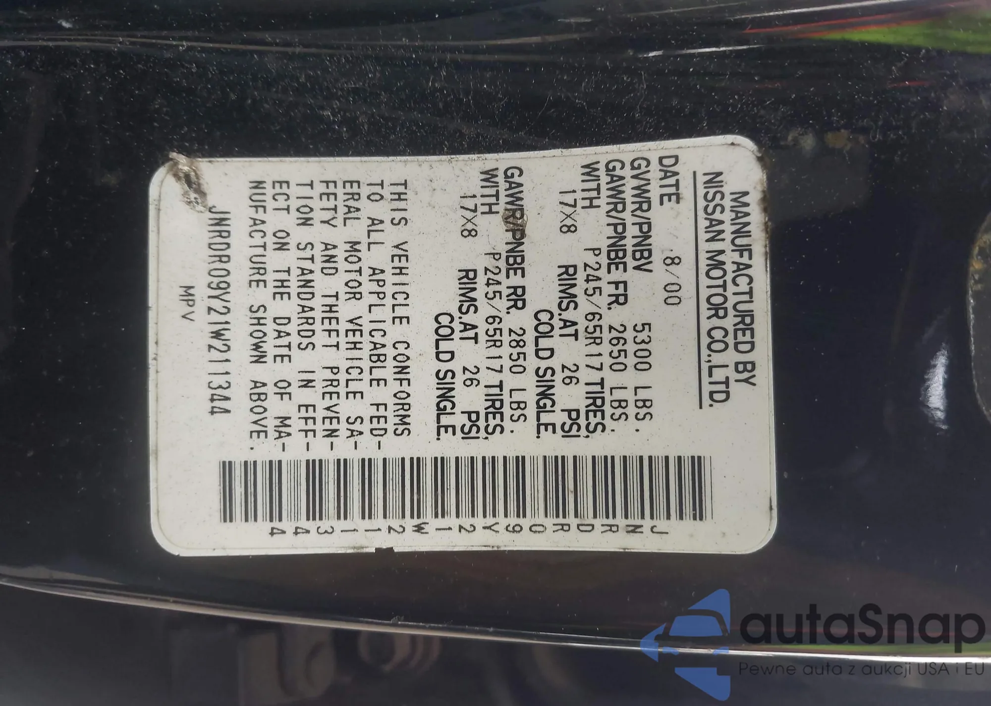 • VIN JNRDR09Y21W211344