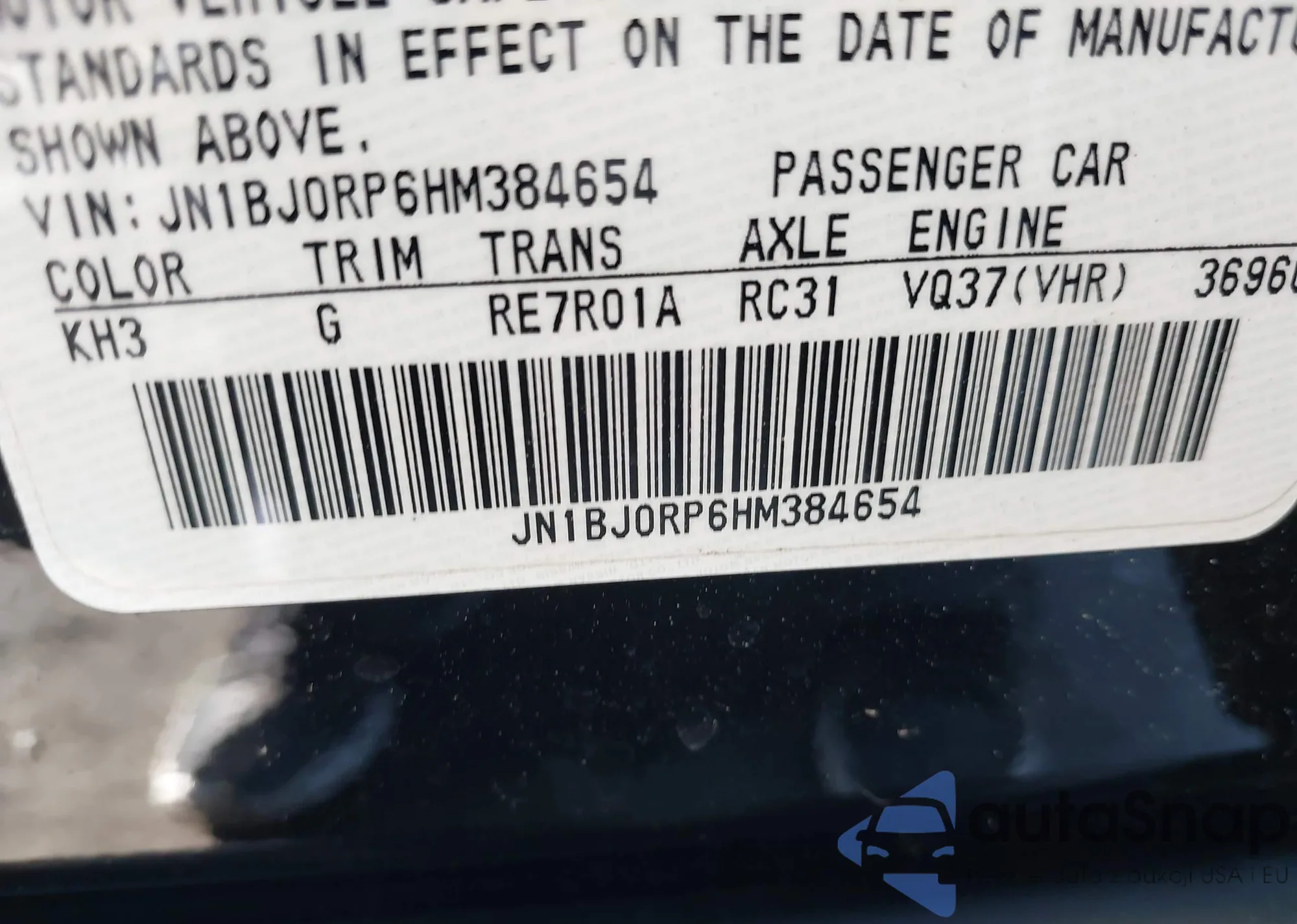 LOT: 44485930 VIN: JN1BJ0RP6HM384654