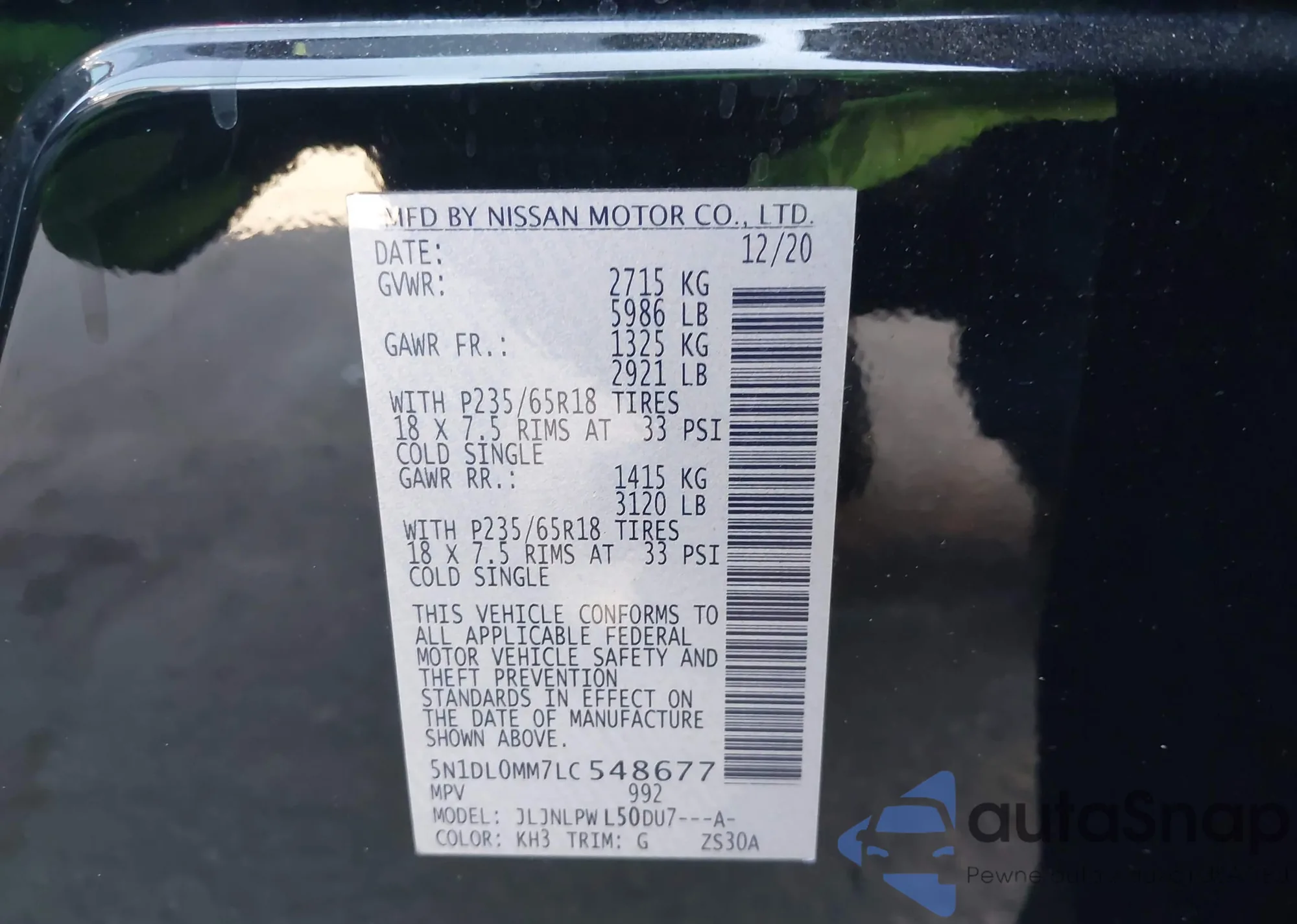 • VIN 5N1DL0MM7LC548677