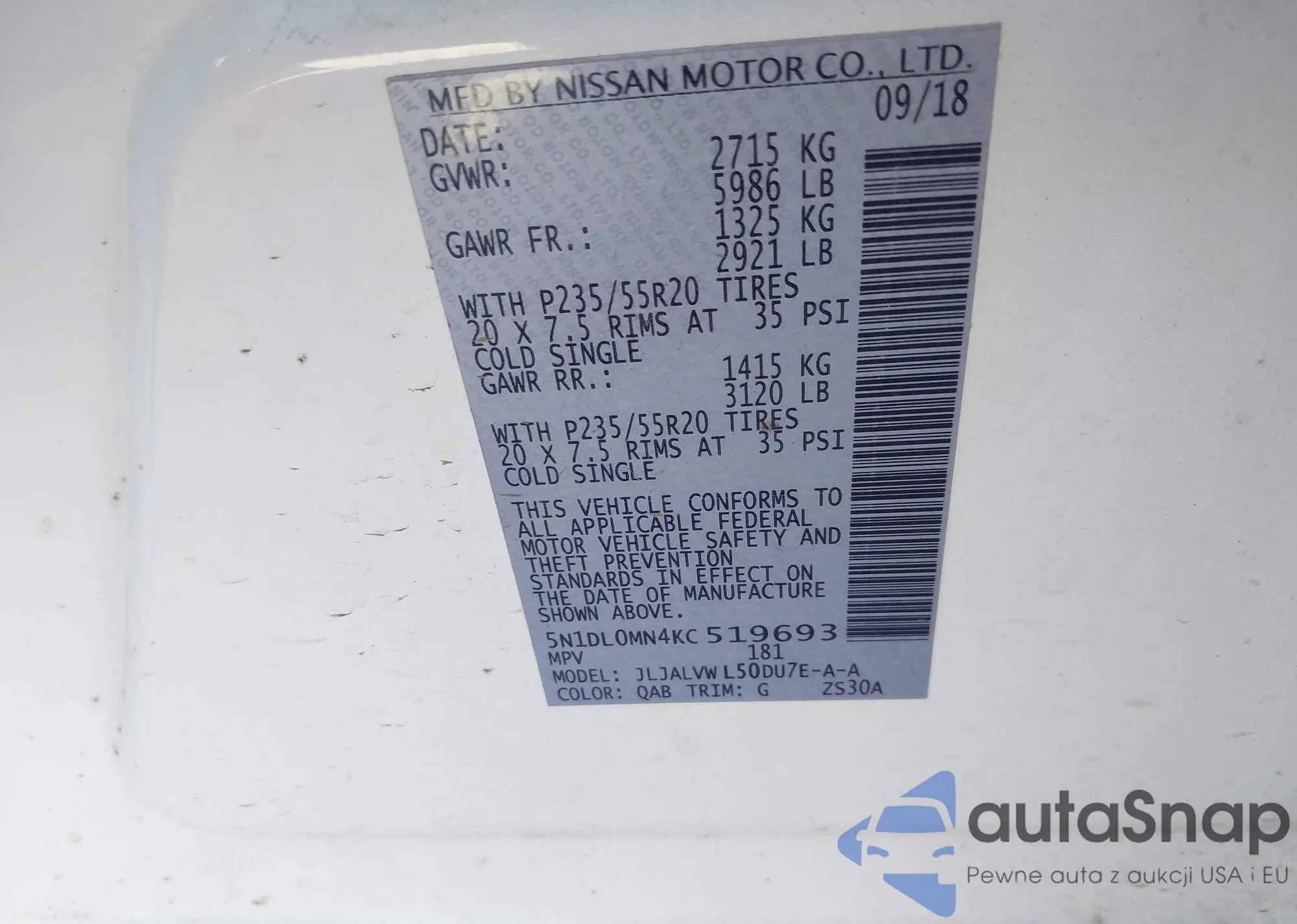 • VIN 5N1DL0MM7JC509150