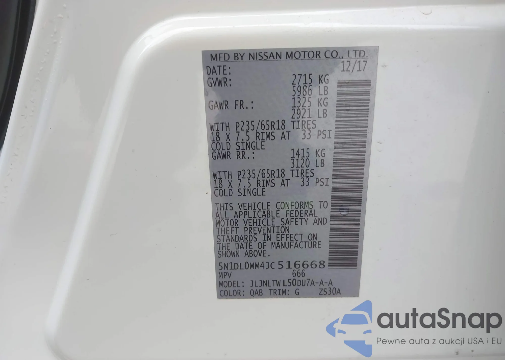 • VIN 5N1DL0MM4JC516668