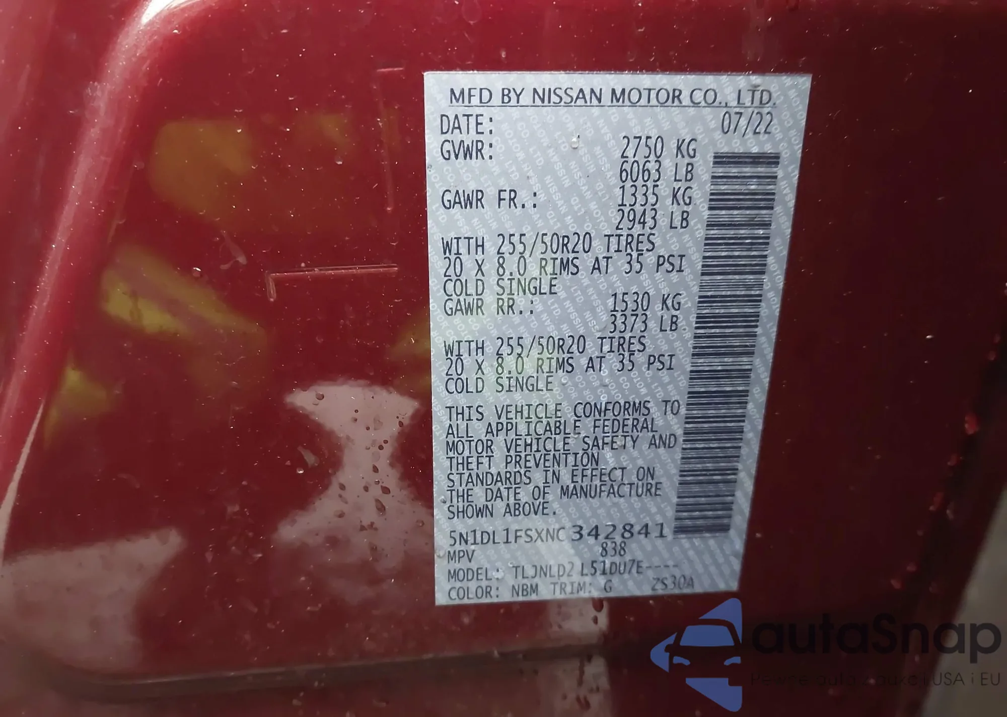 • VIN 5N1DL1FSXNC342841