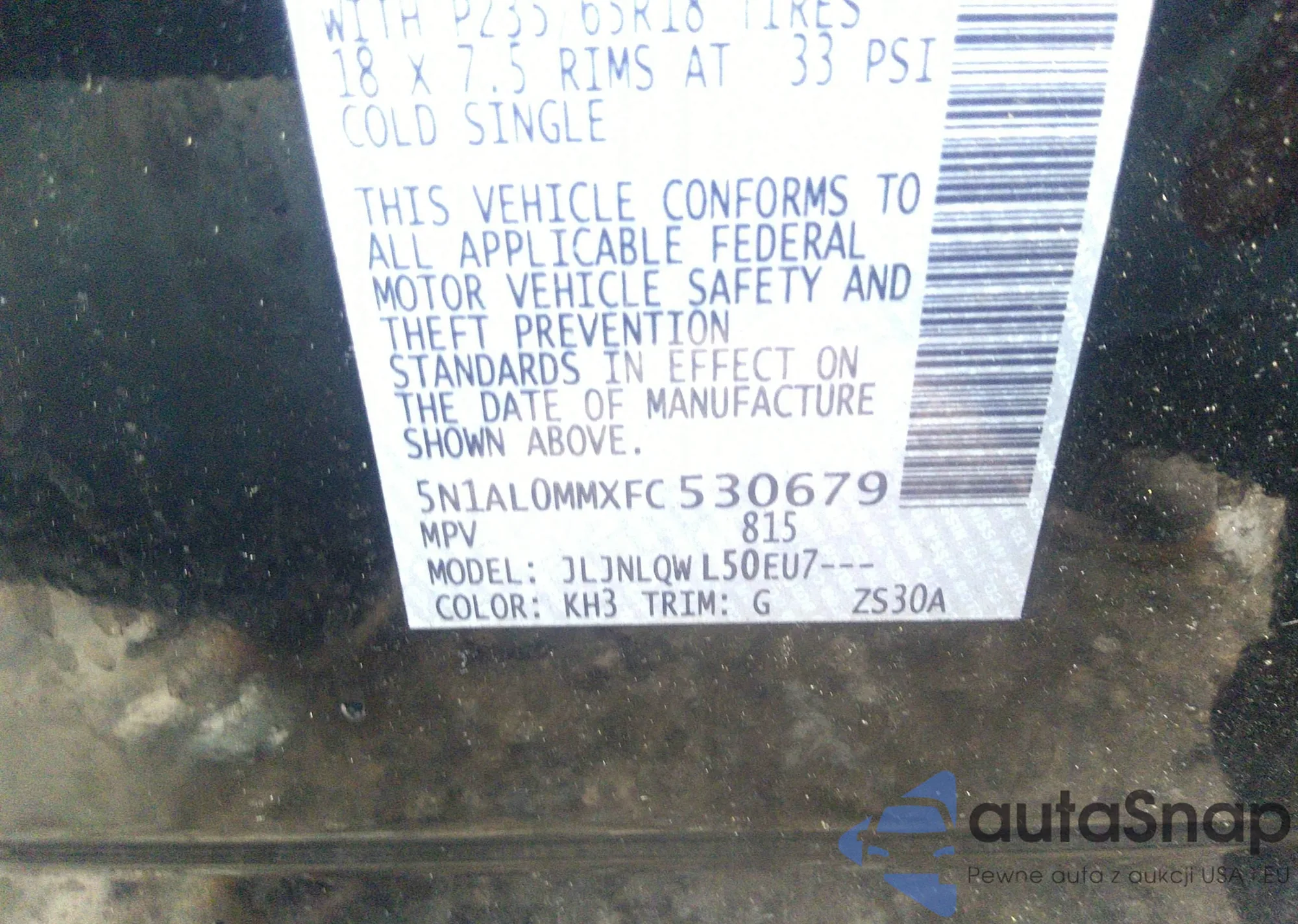 • VIN 5N1AL0MMXFC530679