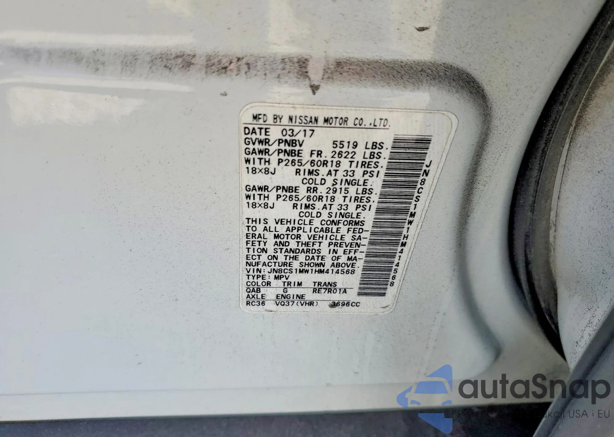 LOT: 78451735 VIN: JN8CS1MW1HM414568