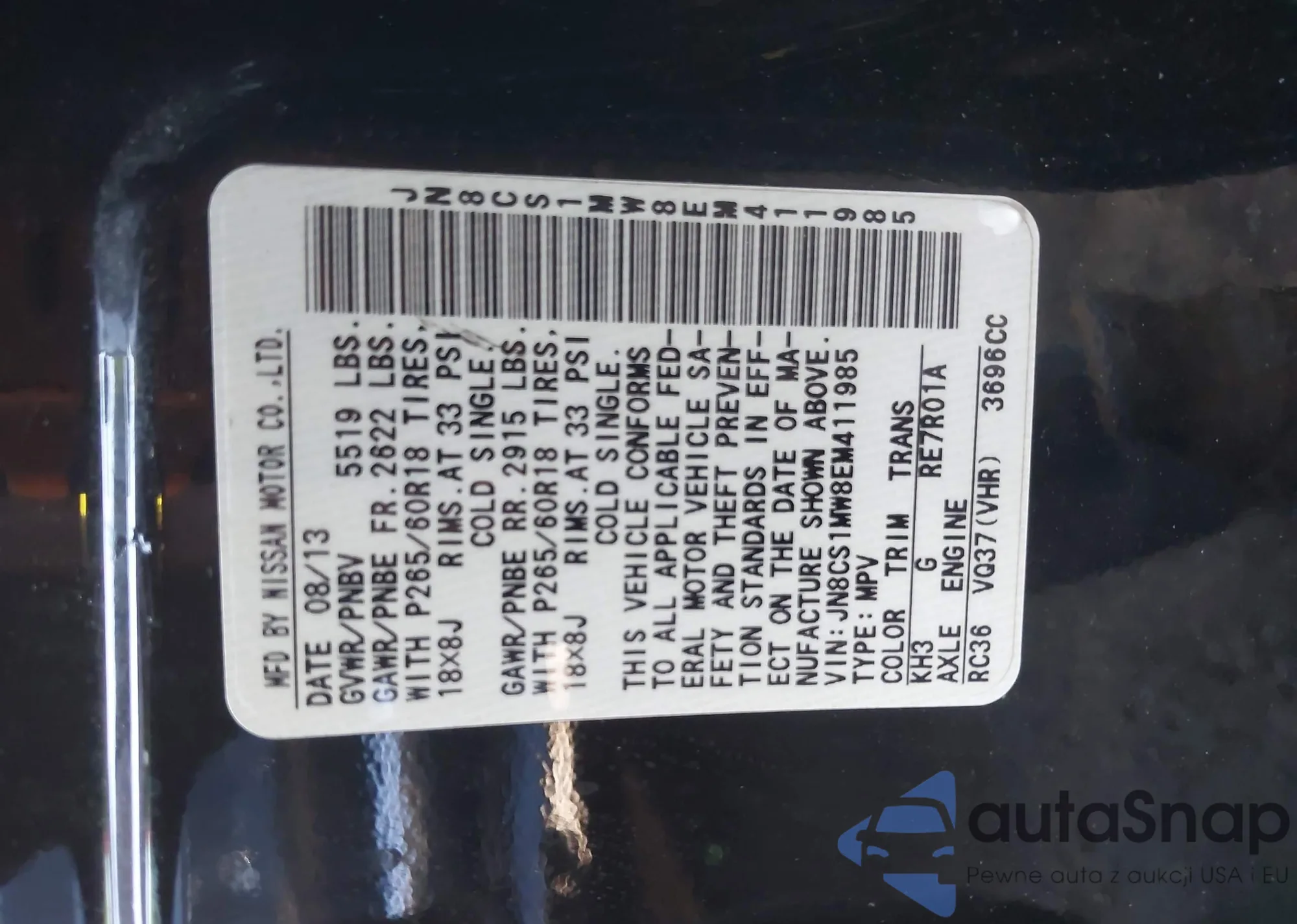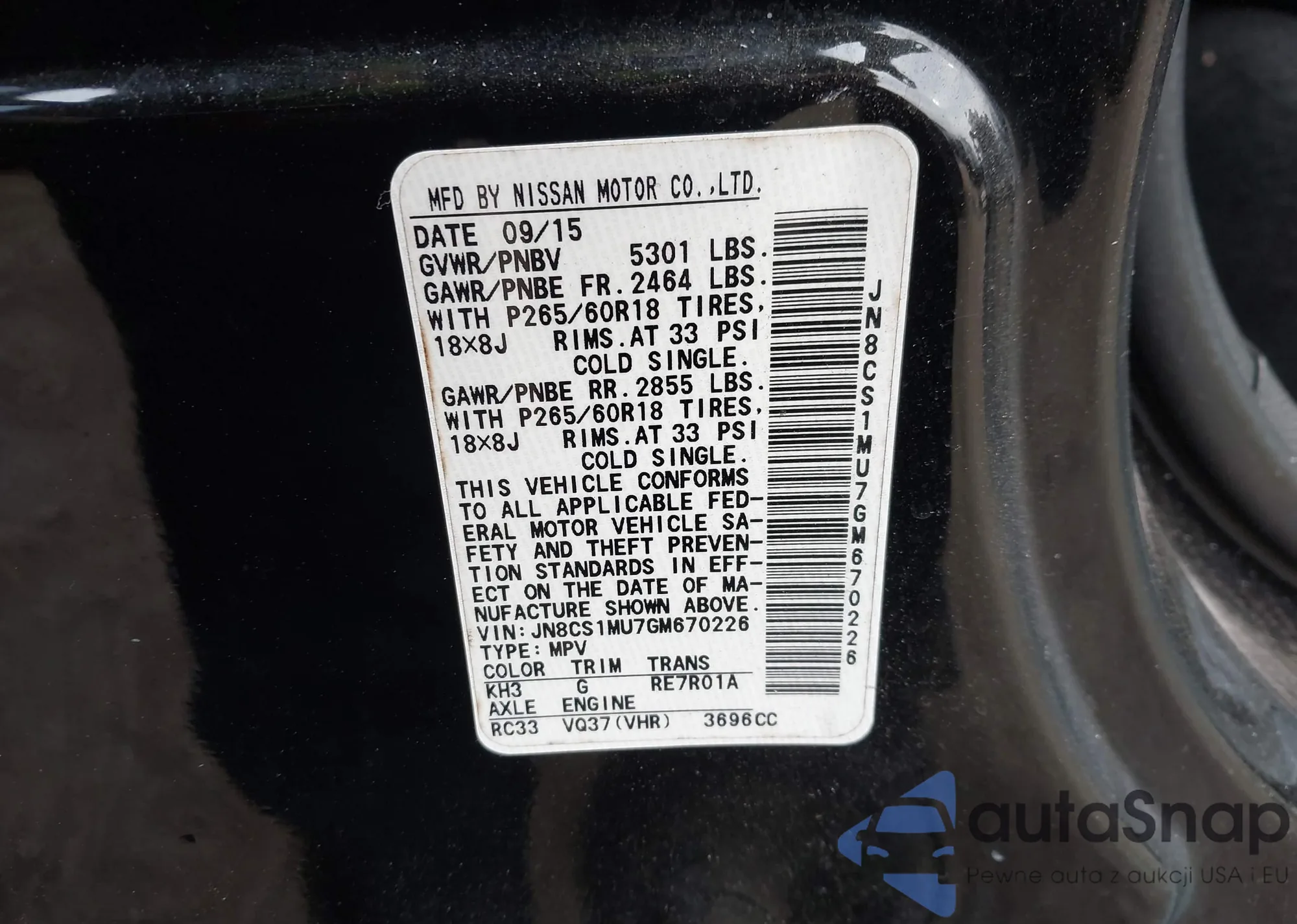 LOT: 91103475 VIN: JN8CS1MU7FM380809