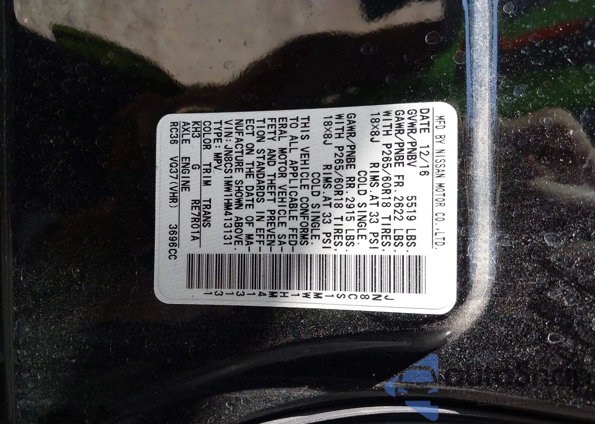LOT: 42394532 VIN: JN8CS1MW2HM416636