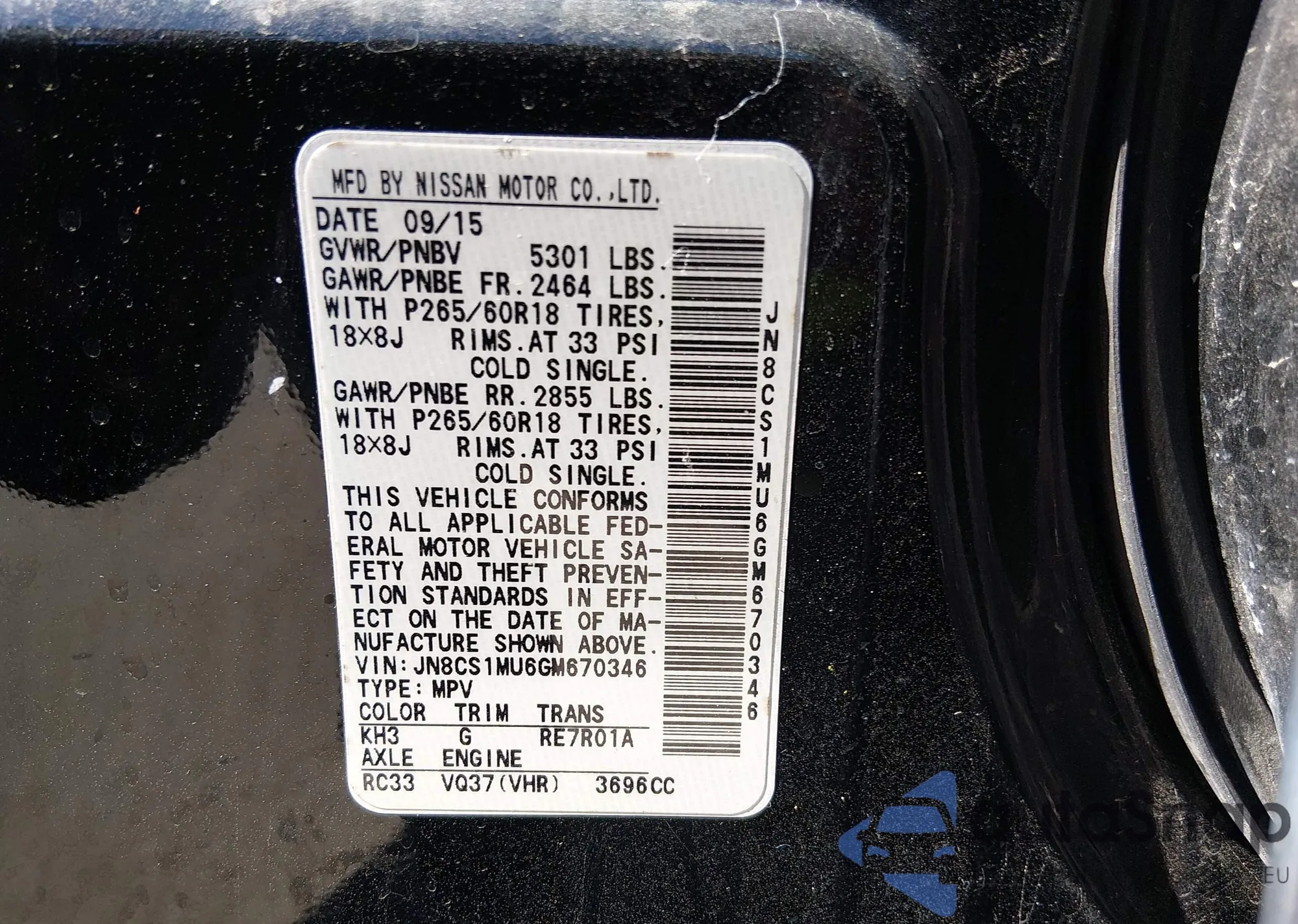 • VIN JN8CS1MU6GM670346