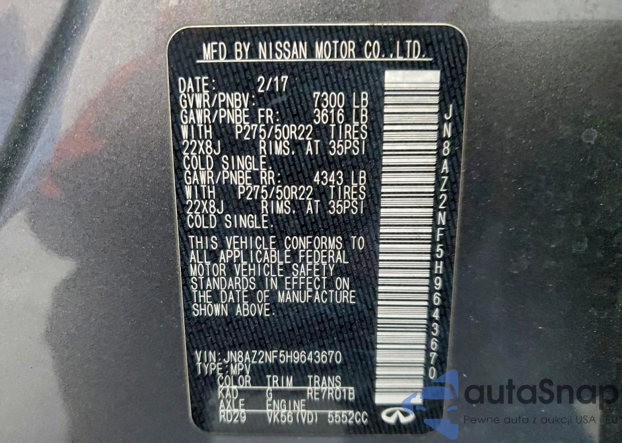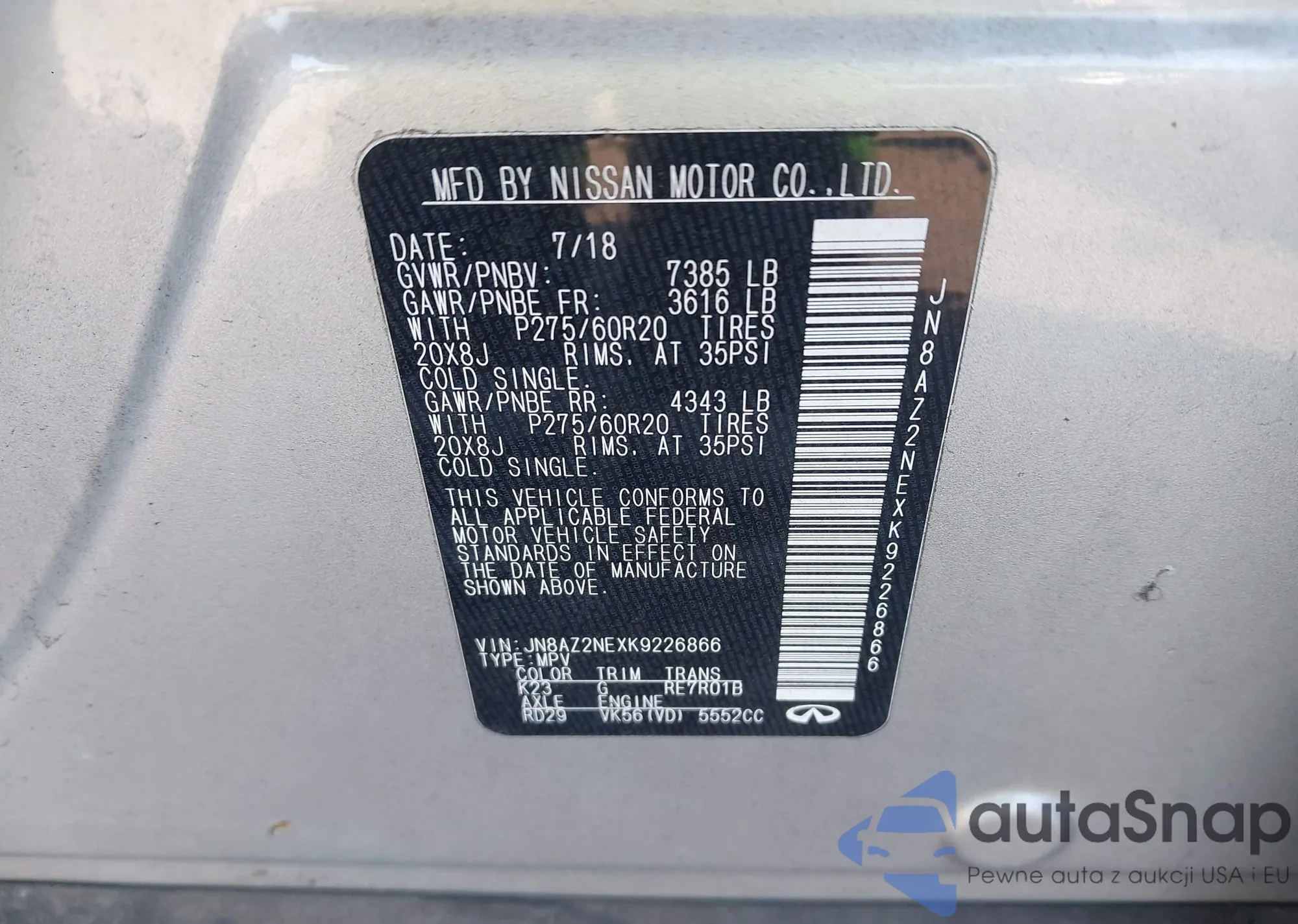 Infiniti QX80 z USA to idealny wybór dla miłośników luksusu i wydajności. Dzięki Autasnap import samochodów z USA do Polski jest prosty i wygodny. Pomożemy w konwersji, zamieniając reflektory, szyby, kierunkowskazy i system nawigacji, aby Twój Infiniti QX80 spełniał normy europejskie. Skontaktuj się z nami i ciesz się swoim nowym autem!