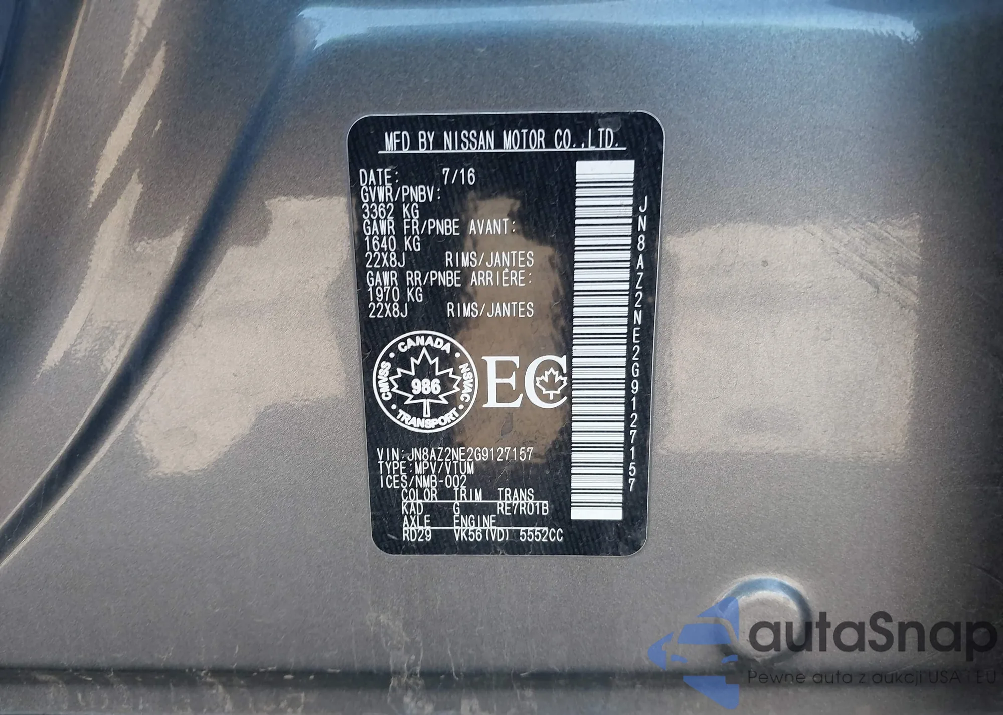 LOT: 43377253 VIN: JN8AZ2NE2G9127157