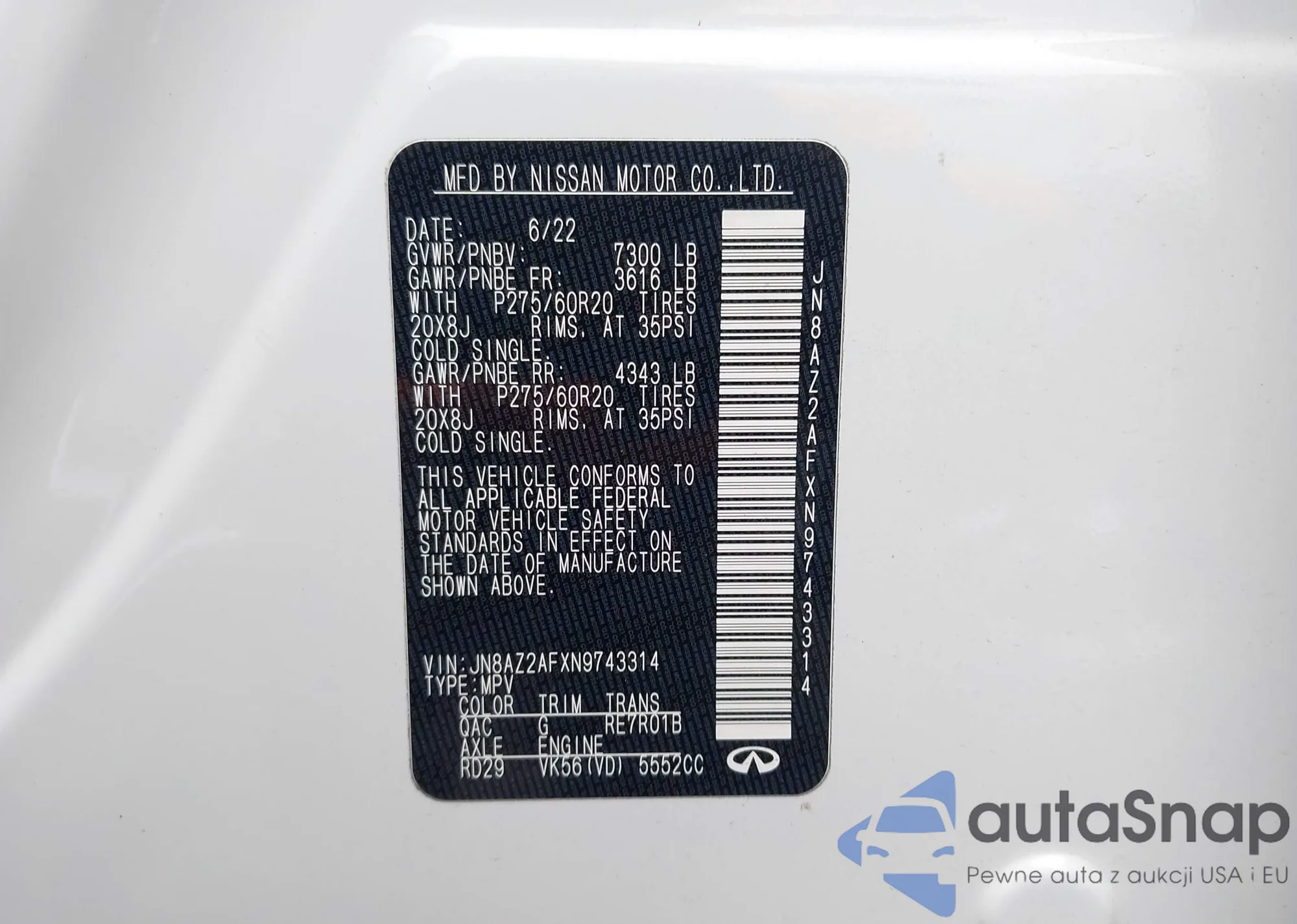 • VIN JN8AZ2AFXN9741479
