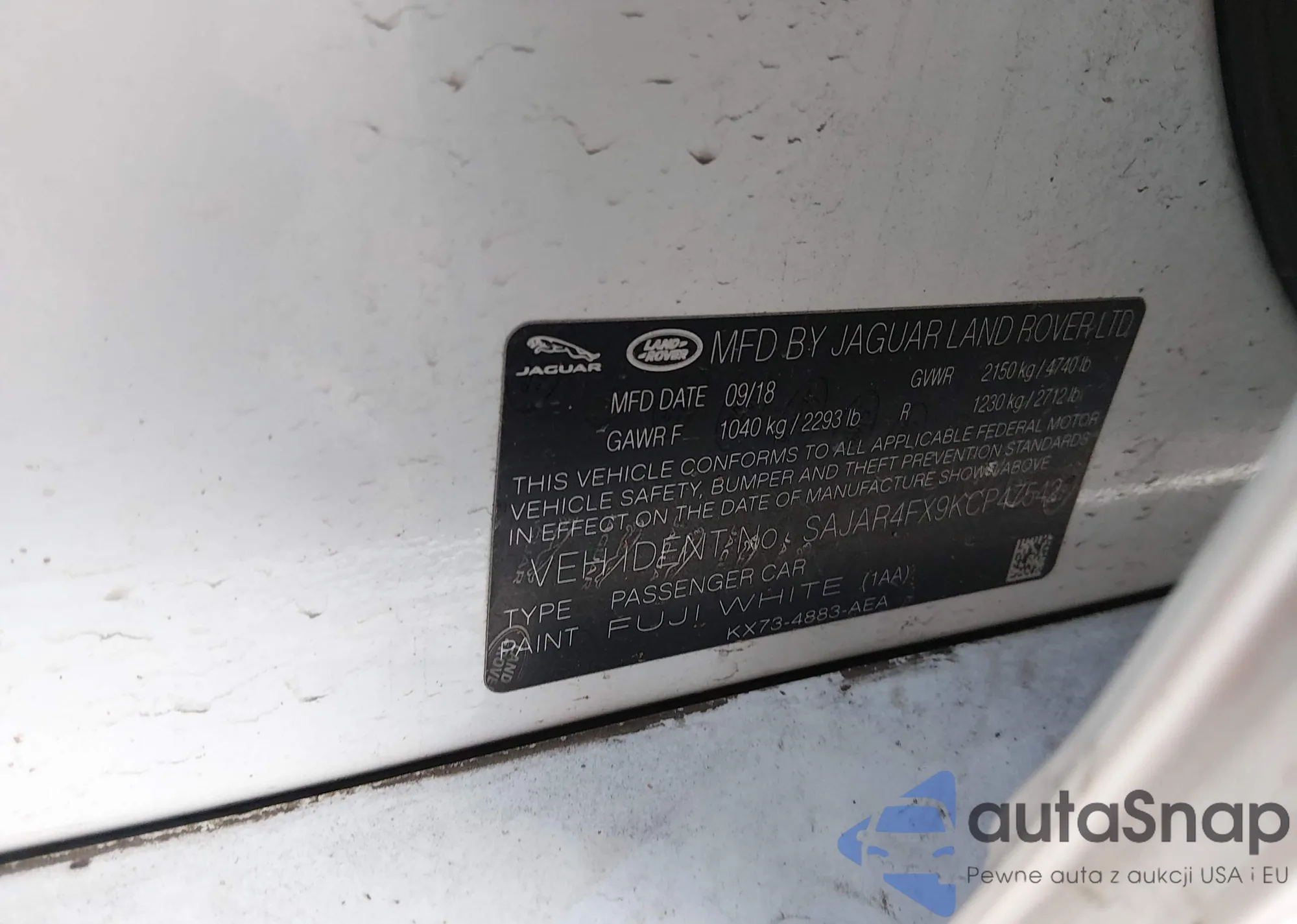LOT: 44543347 VIN: SAJAR4FX9KCP47542