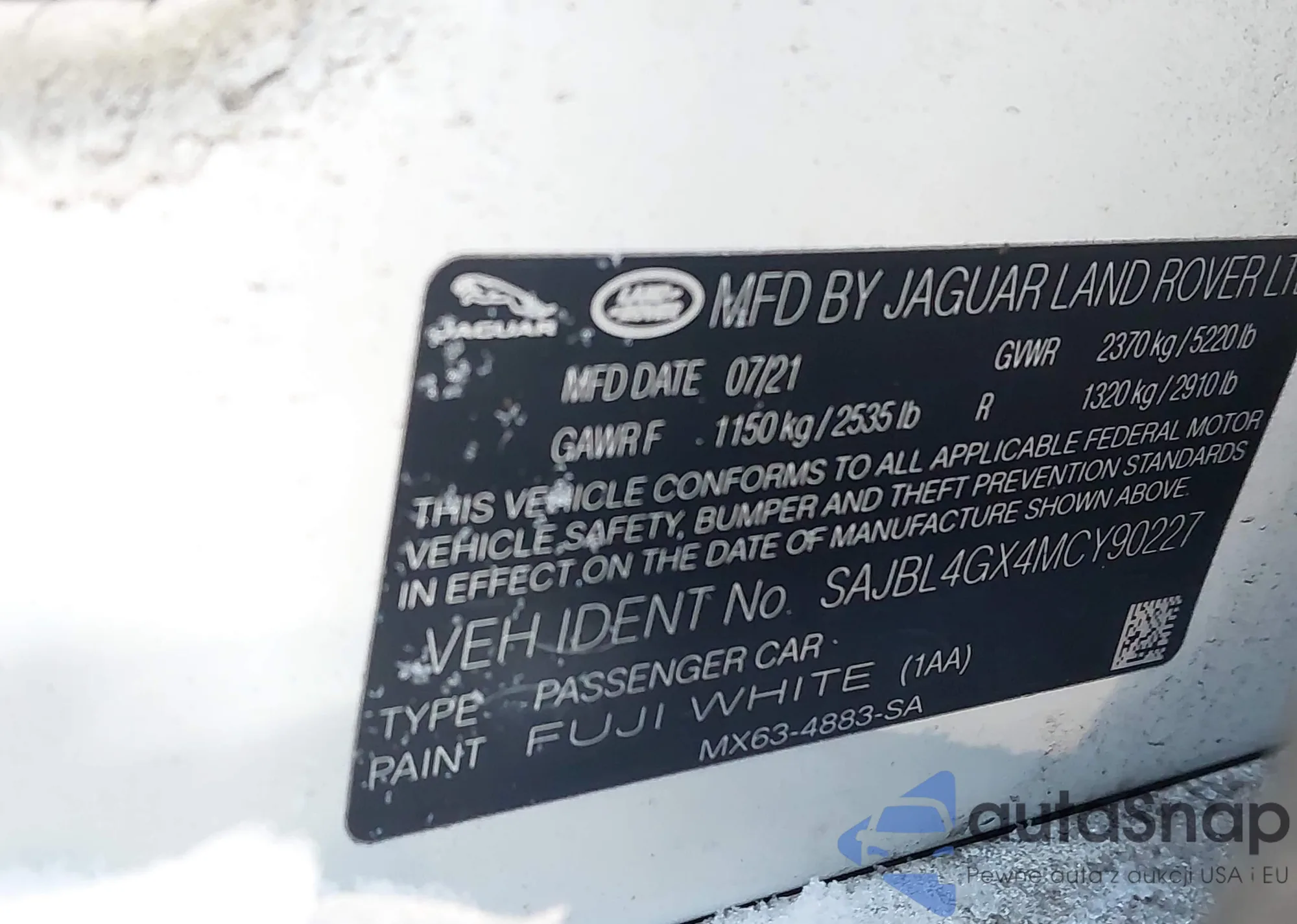 • VIN SAJBL4GX4MCY90227