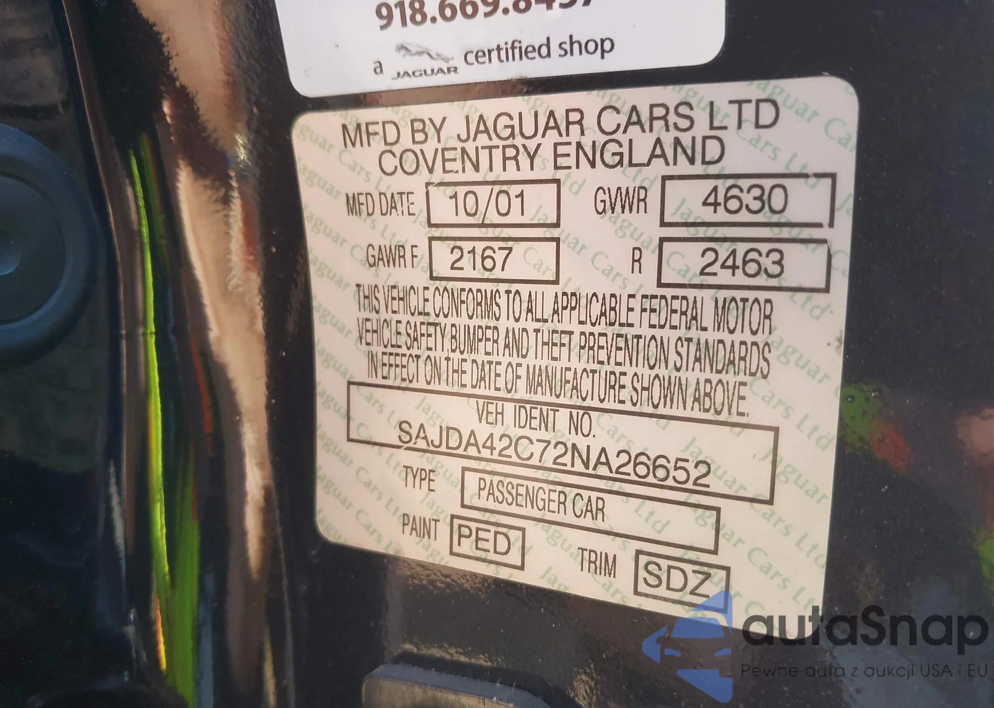 LOT: 75355935 VIN: SAJDA42C852A42381