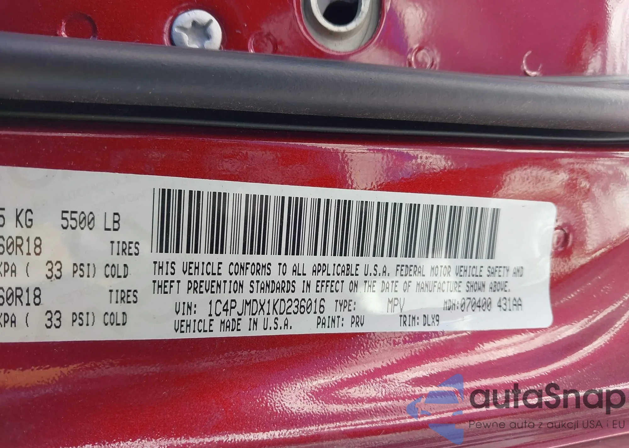 • VIN 1C4PJMDX1KD236016